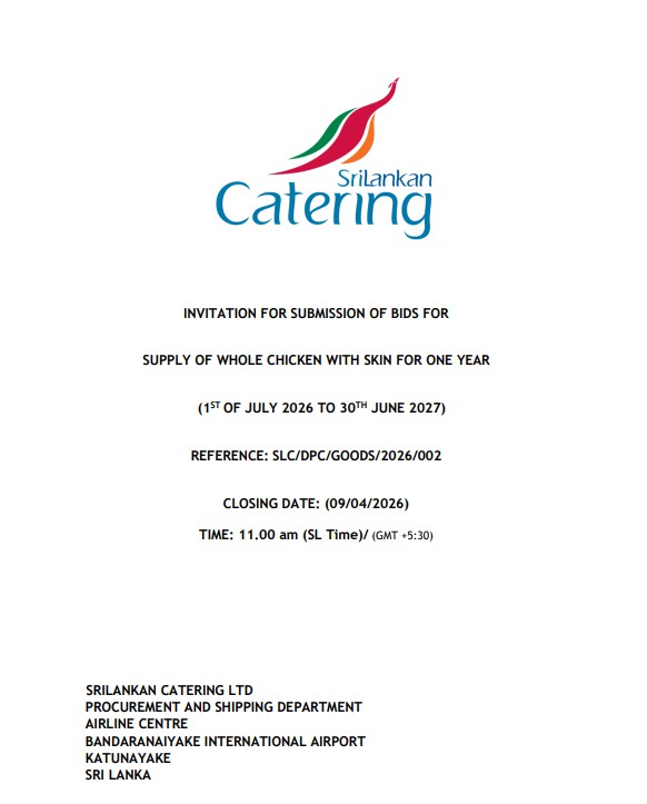 152 Invitation for Bids (IFB) - SriLankan Catering Ltd Supply of whole Chicken with Skin for One Year (1st July 2026 to 30th June 2027)