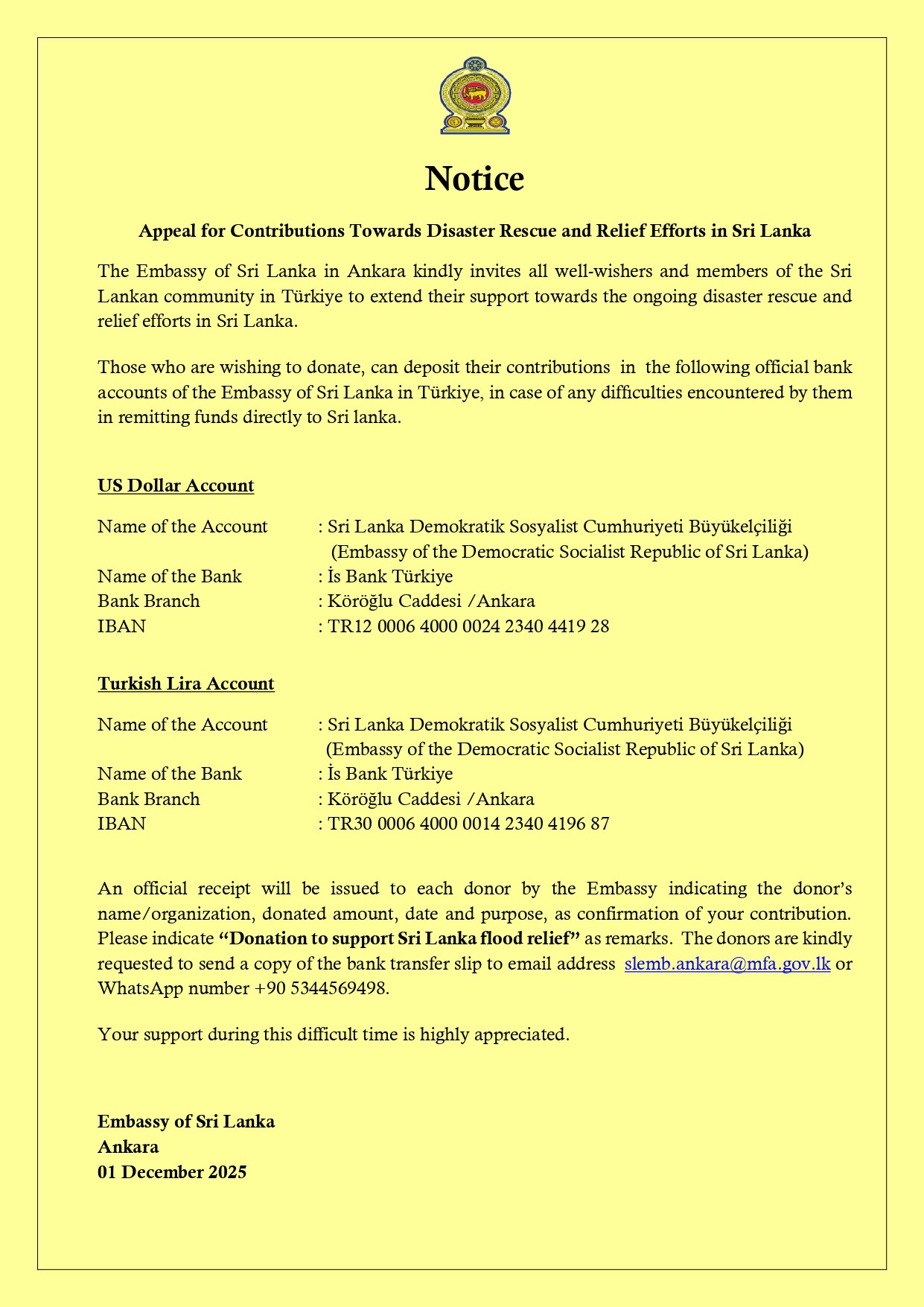 Appeal for Contributions Towards Disaster Rescue and Relief Efforts in Sri Lanka