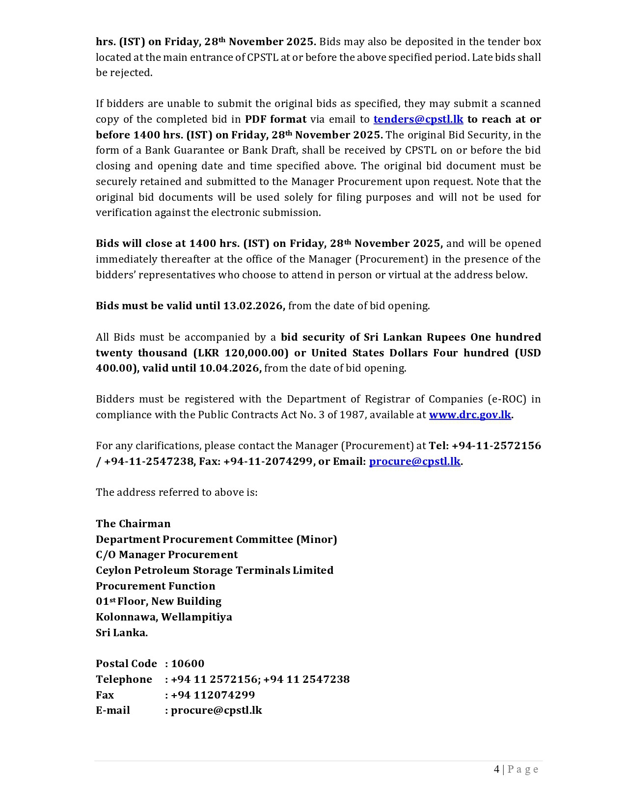 Invitation for Bids (IFB) – Ceylon Petroleum Storage Terminals Limited Supply of 02 Nos. Swivel End Type Cylindrical Buoys Tender