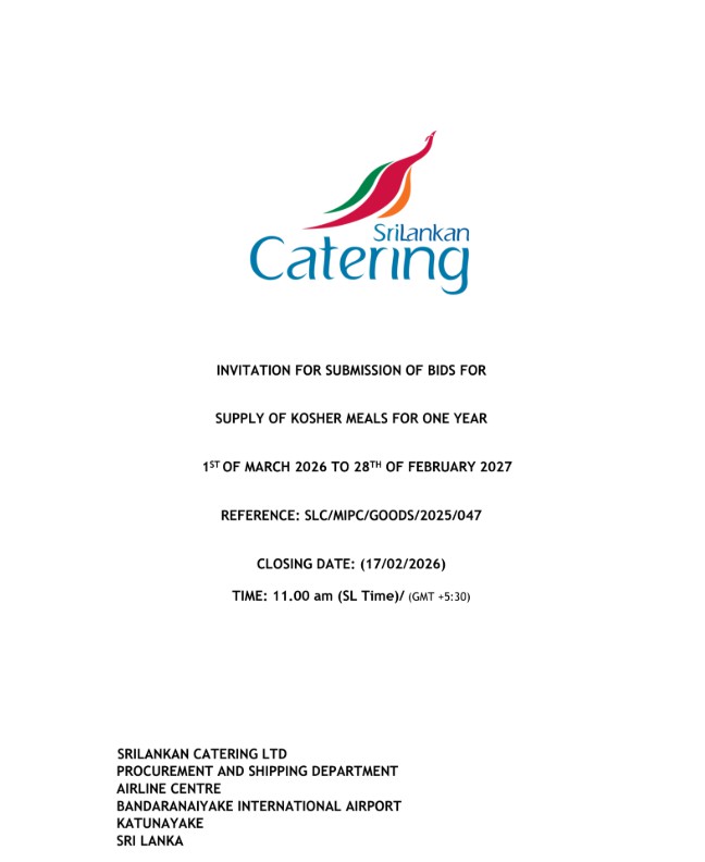 6.02.2026 - 11:20 Invitation for Bids (IFB) - SriLankan Catering Ltd Reference No.: SLC/MIPC/GOODS/2026/004 & SLC/MIPC/GOODS/2025/047