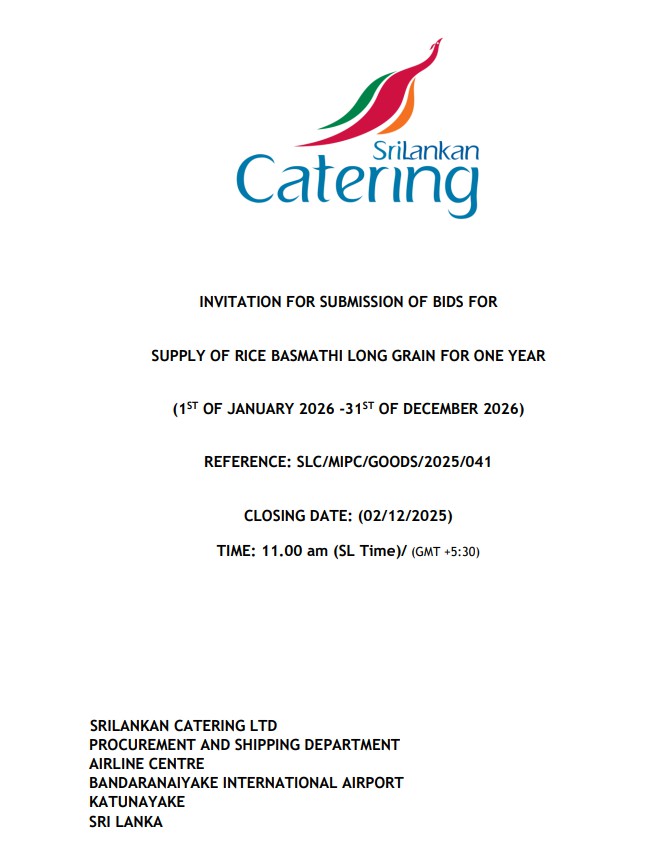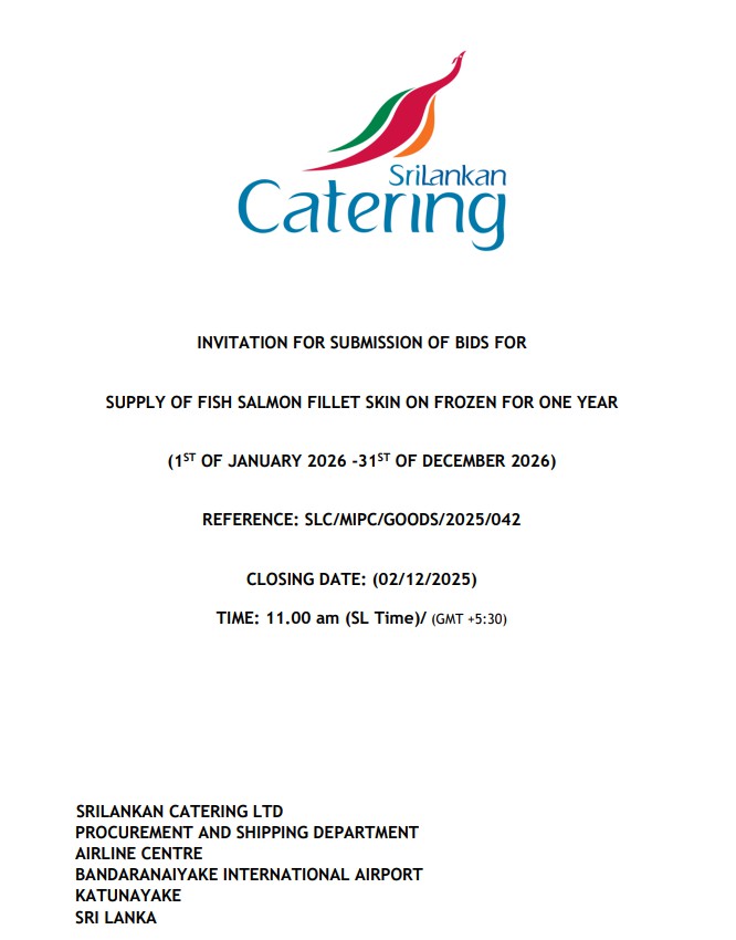 Invitation for Bids (IFB) – SriLankan Catering Ltd Reference Nos: SLC/MIPC/GOODS/2025/041 & SLC/MIPC/GOODS/2025/042