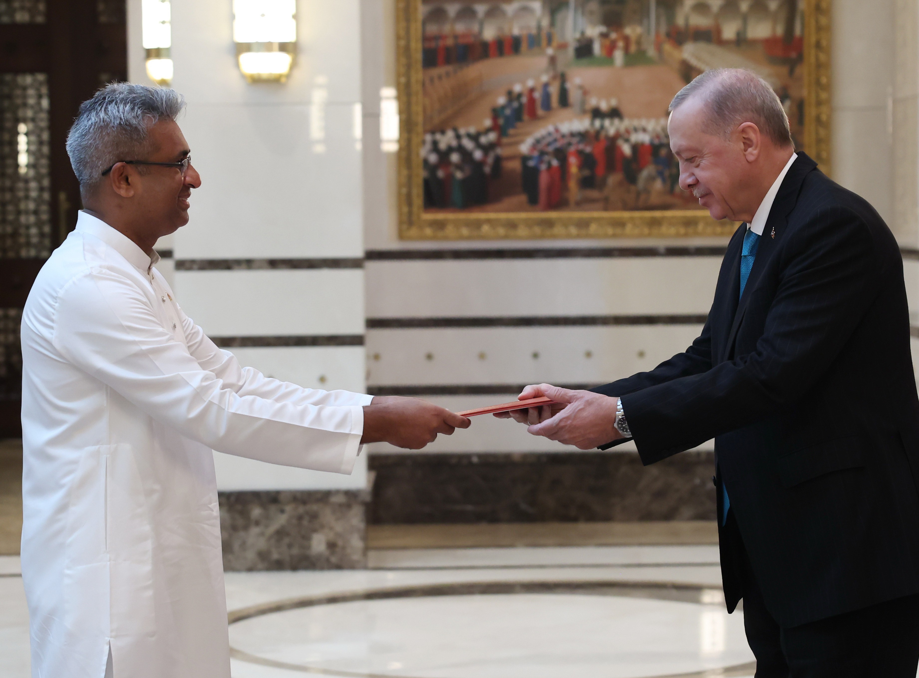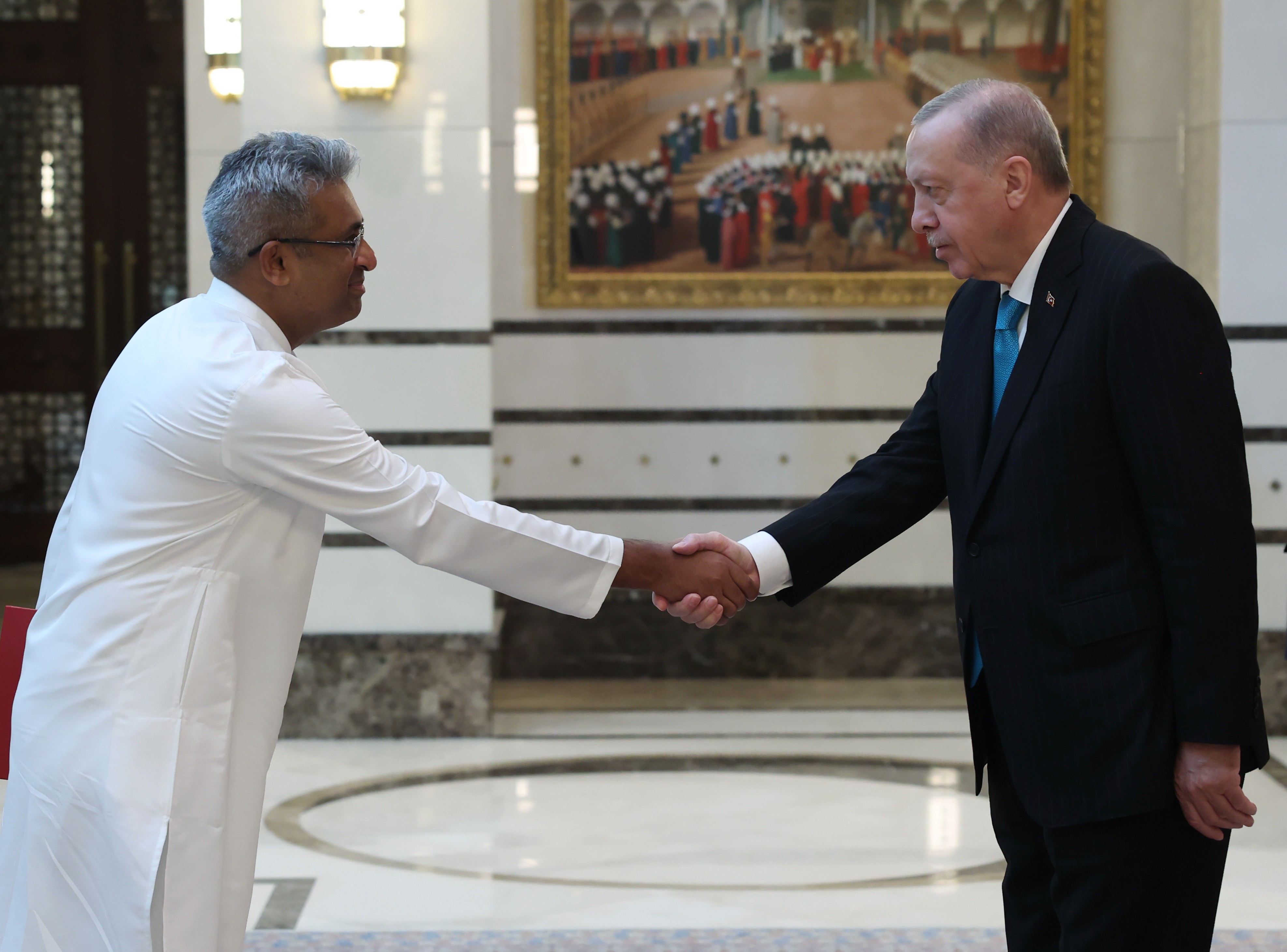 During the meeting that followed the Credentials ceremony, President Erdoğan expressed keen interest in exploring ways and means to enhance trade, economic and investment cooperation between the two countries. He also referred to Türkiye’s educational and scholarship programmes that are beneficial to Sri Lanka and highlighted the growing prospects for defence industry collaboration as well.