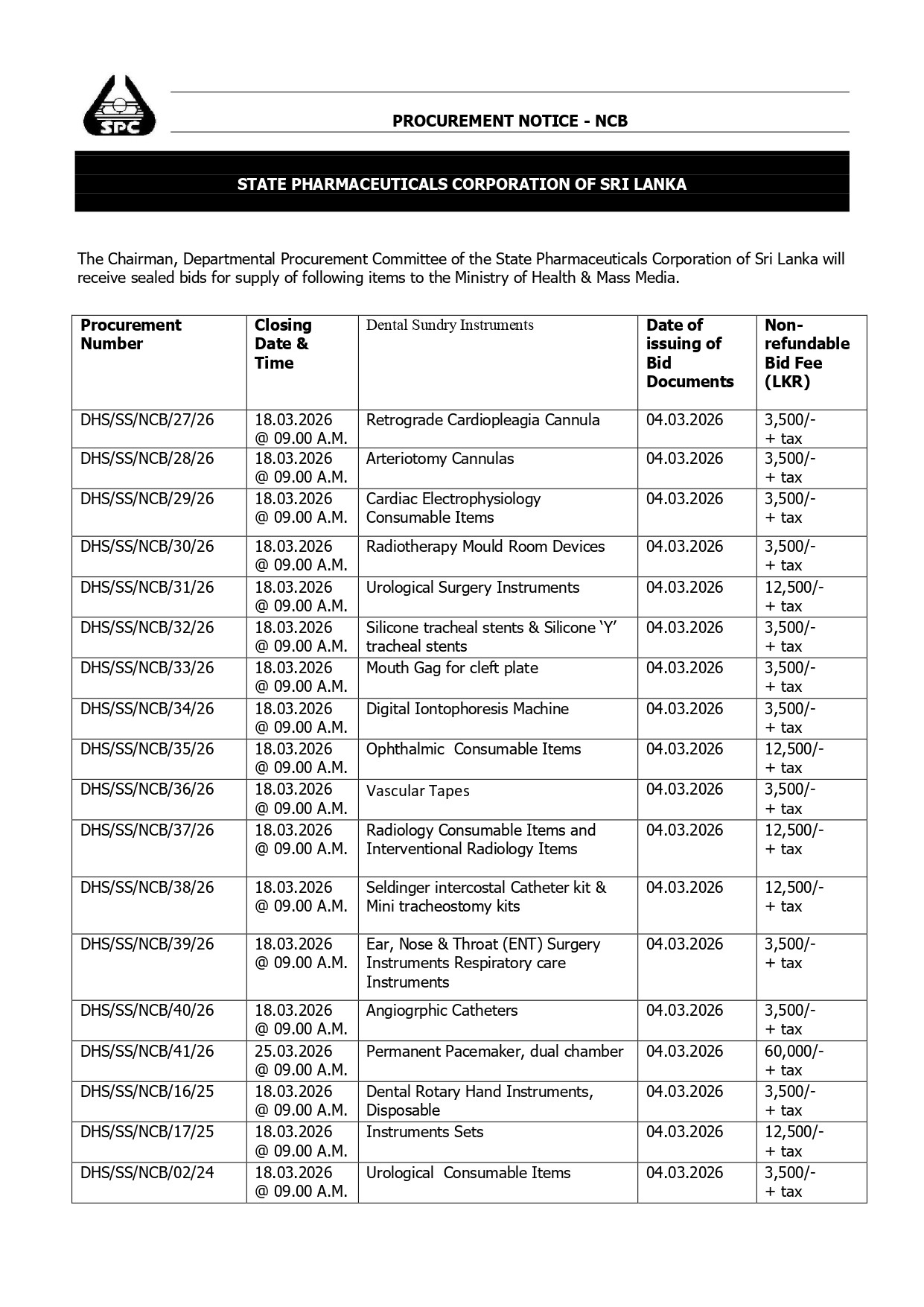 Procurement Notice - State Pharmaceuticals Corporation of Sri Lanka
