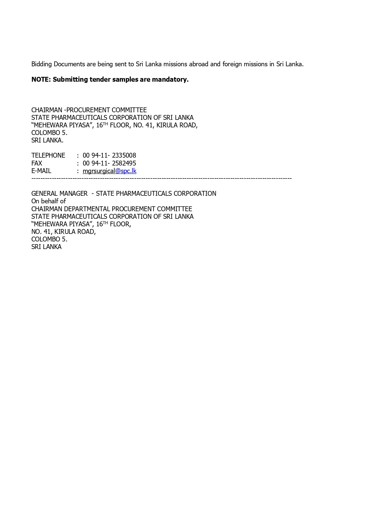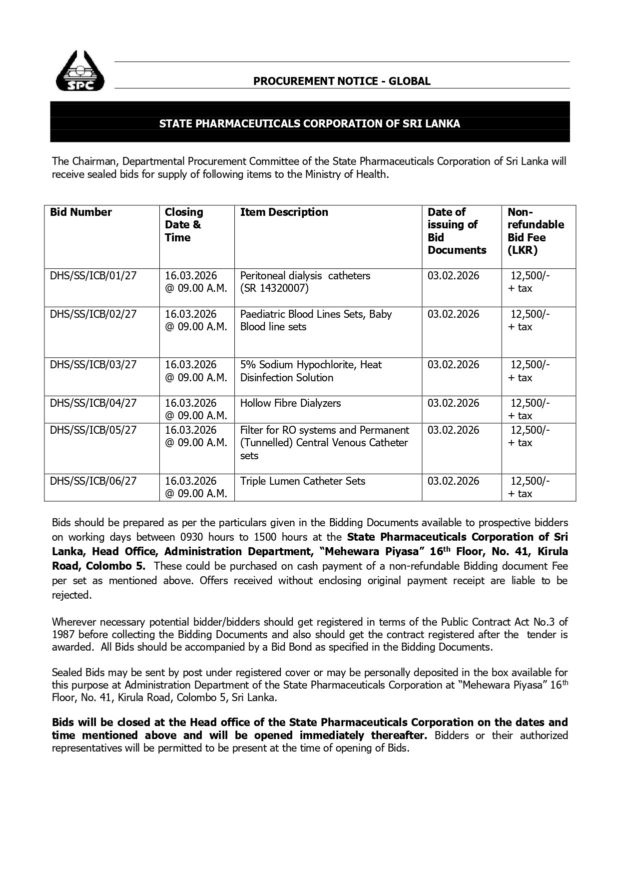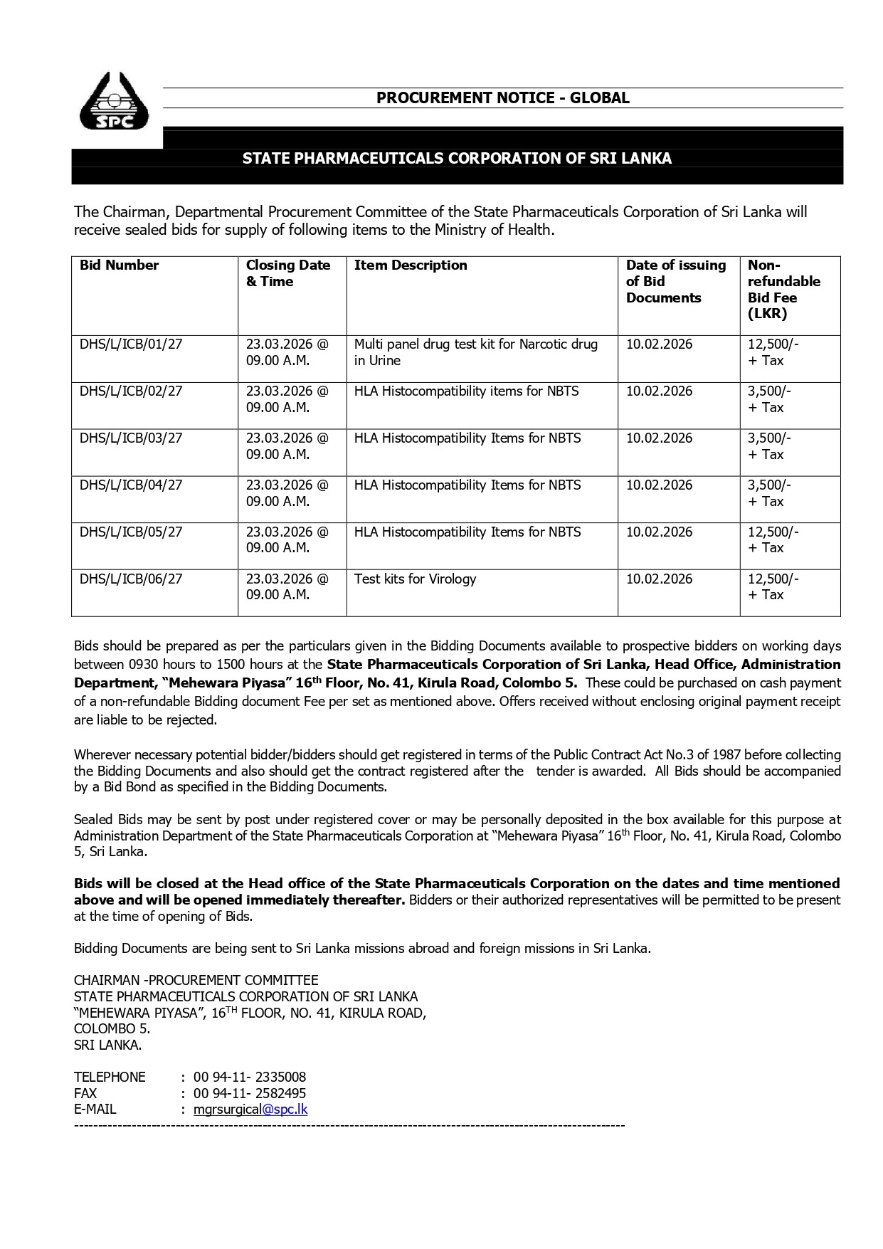 Procurement Notices - State Pharmaceuticals Corporation of Sri Lanka