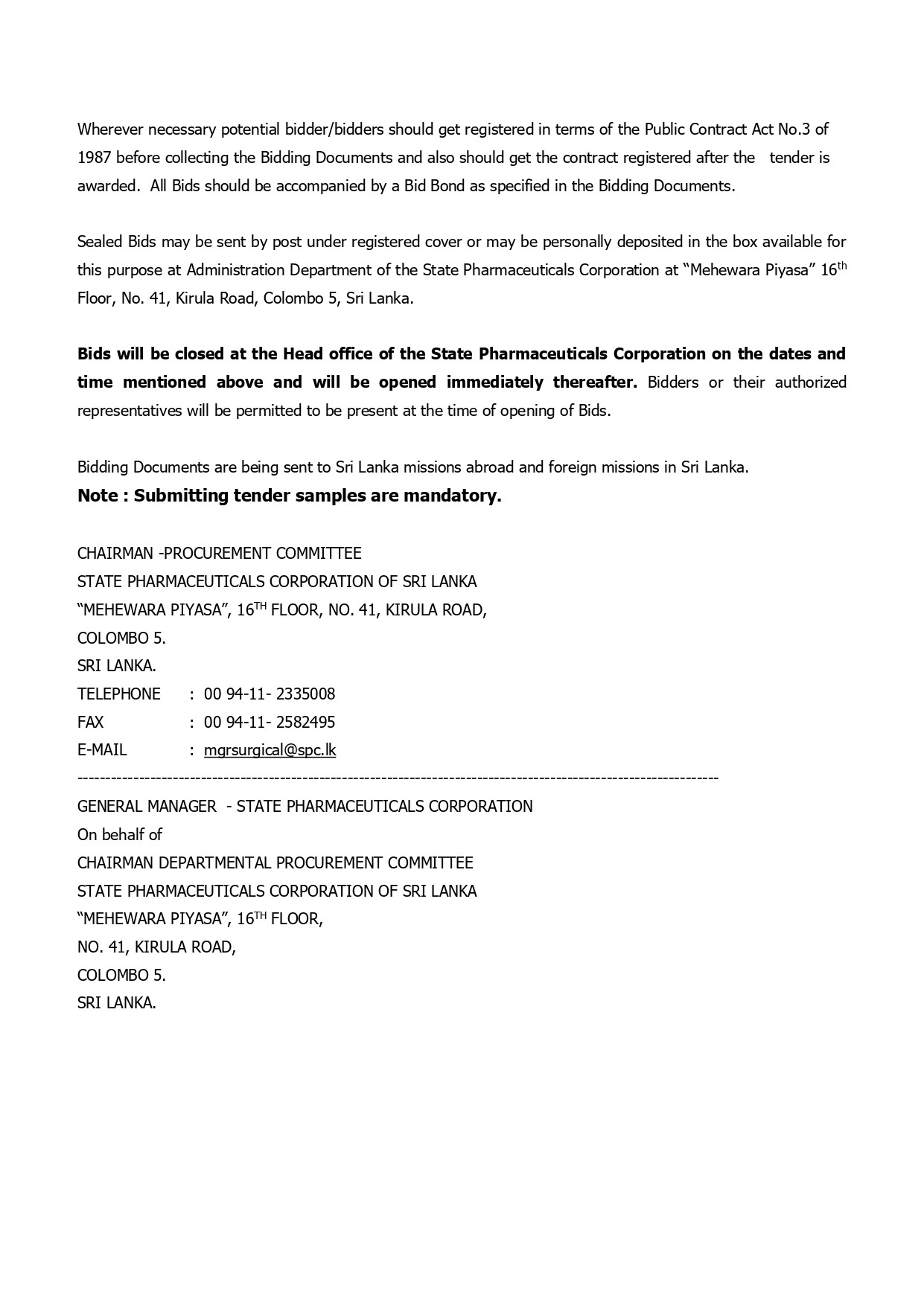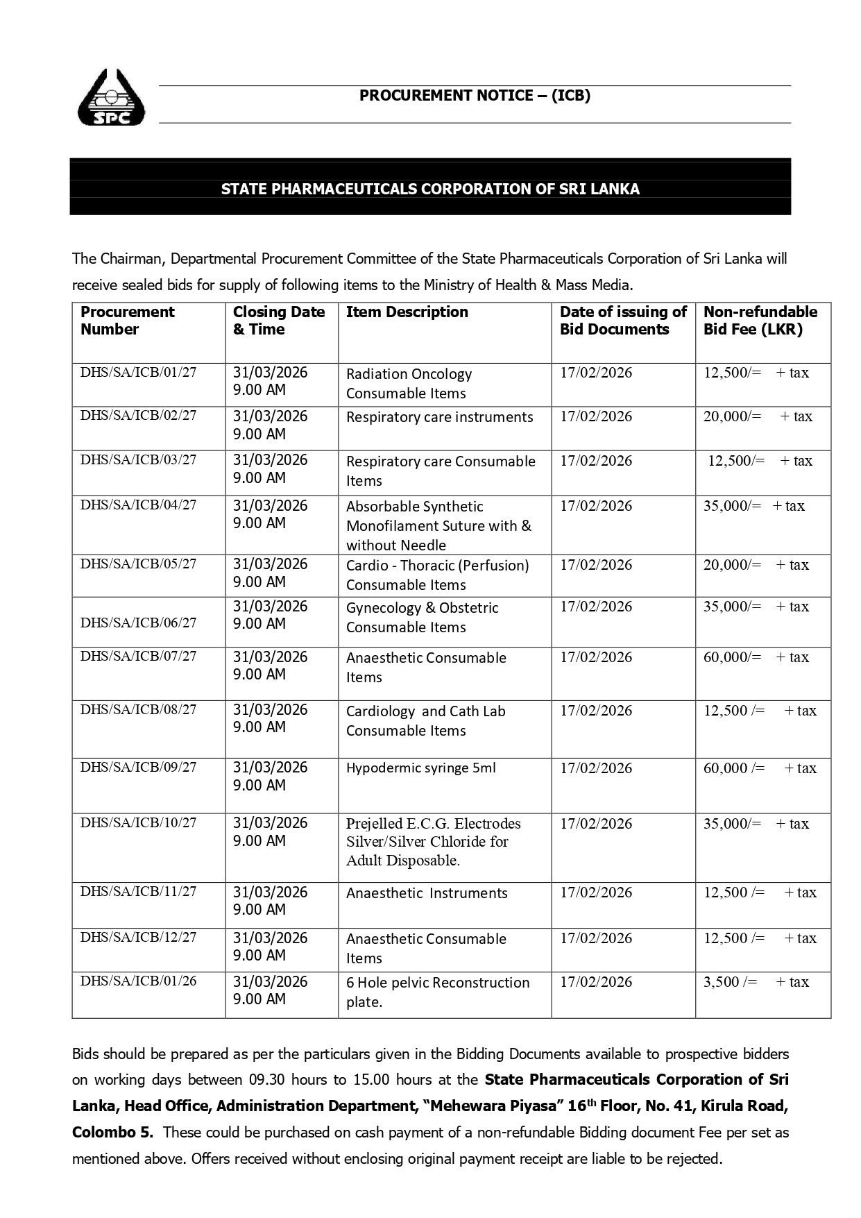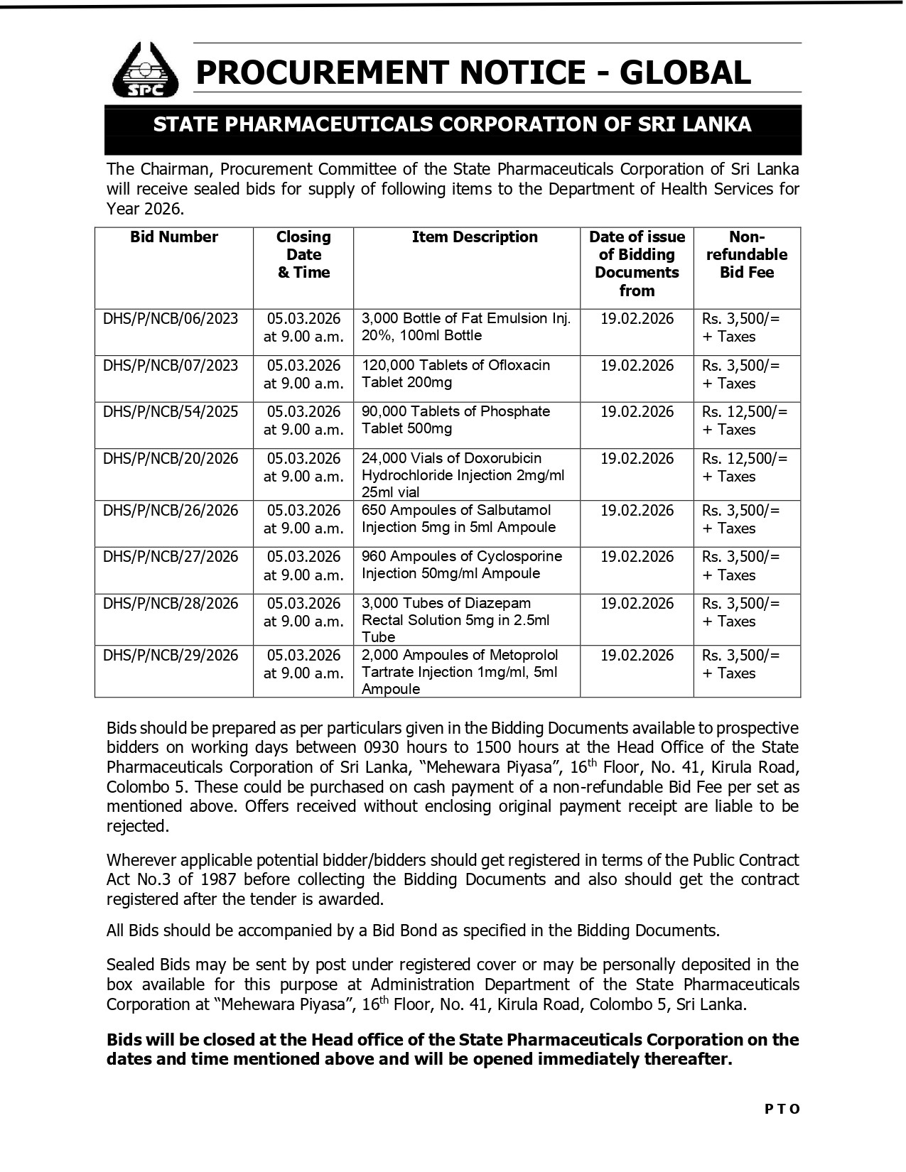 23.02.2026 - 18:20 Procurement Notices - State Pharmaceuticals Corporation of Sri Lanka Read for more information https://drive.google.com/.../1tvcOFaxjejns...