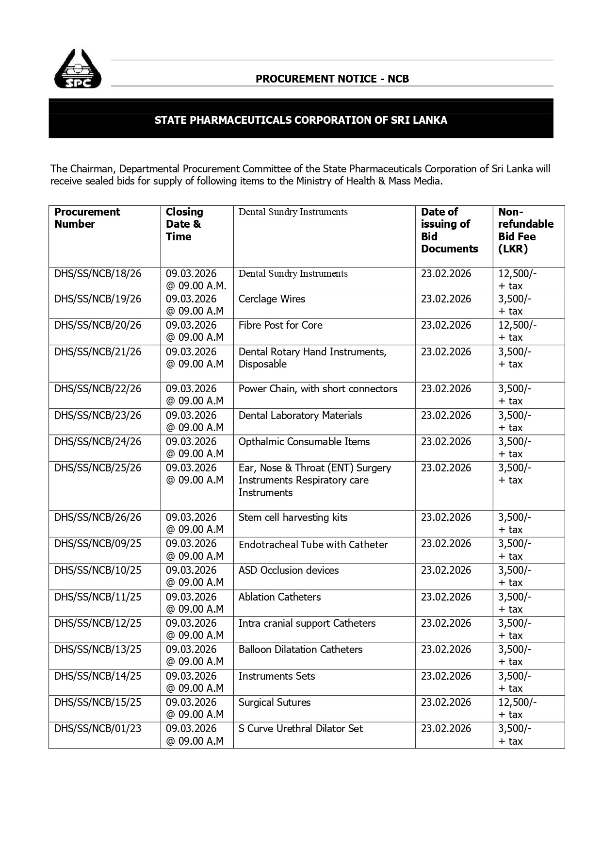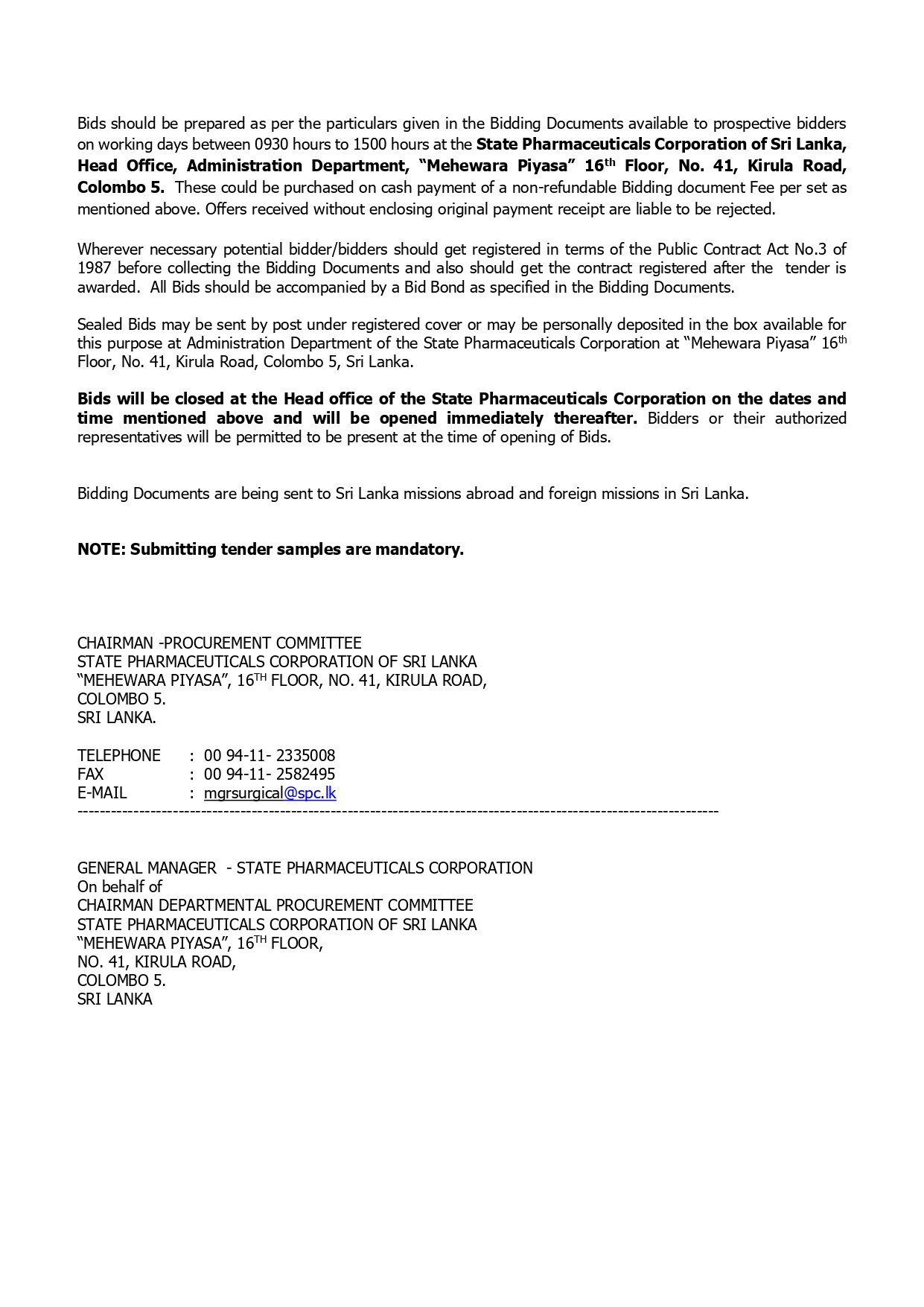 Procurement Notices - State Pharmaceuticals Corporation of Sri Lanka