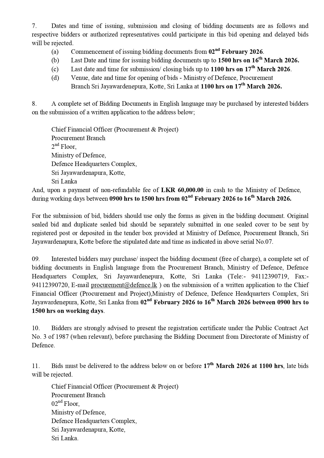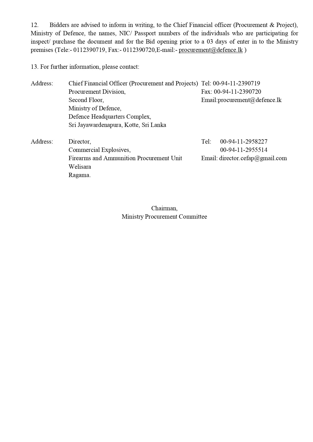 Procurement of Electric Detonators (6mtr) 1,000,000 No’s for the Commercial Explosives, Firearms and Ammunition Procurement of Sri Lanka Navy Contract No: MOD/SLN/02/2025