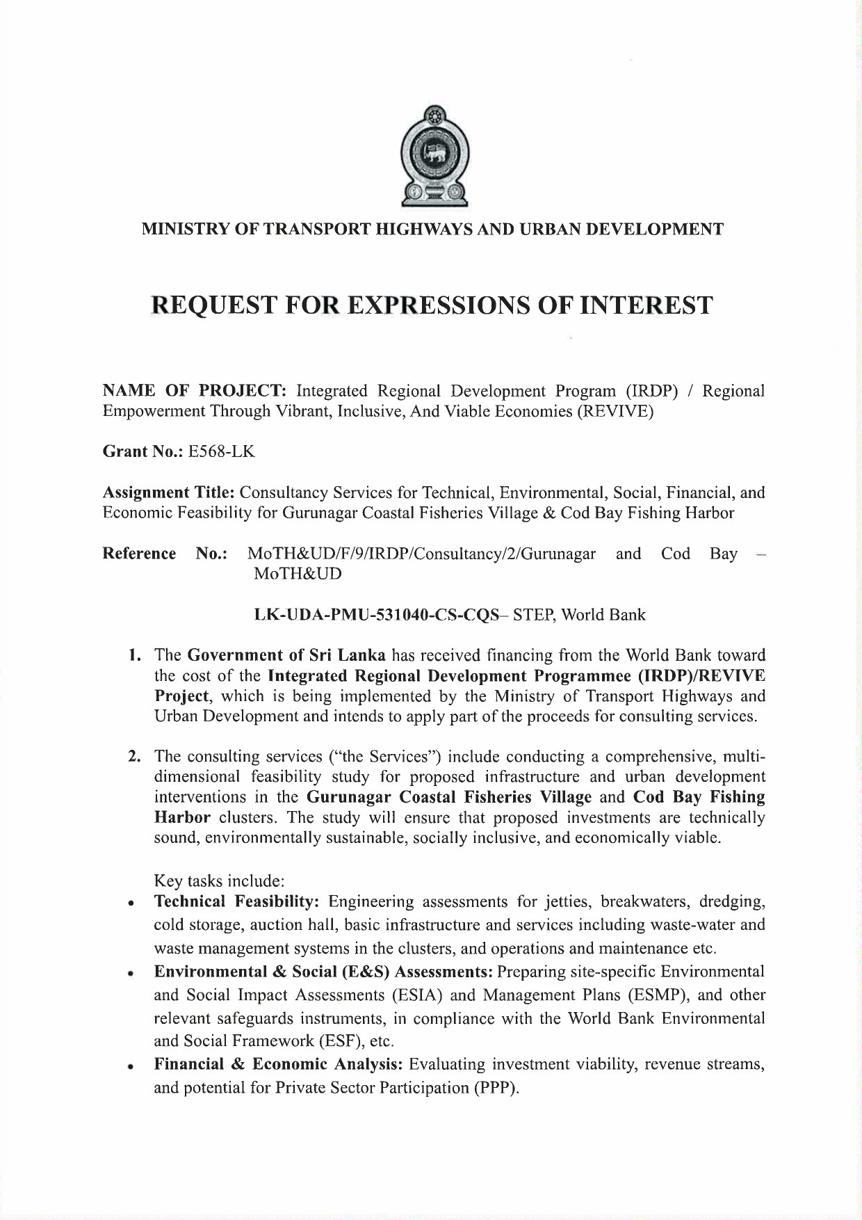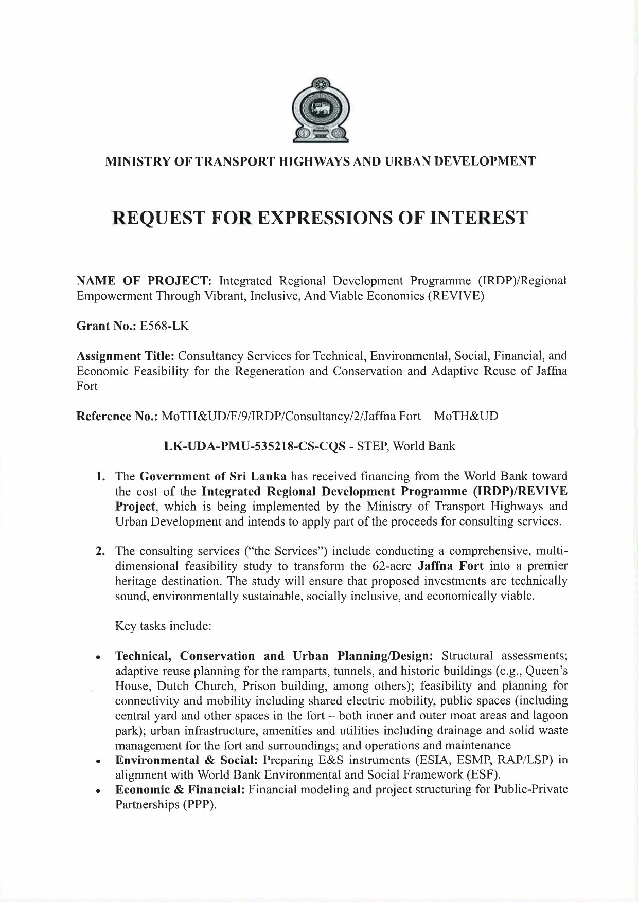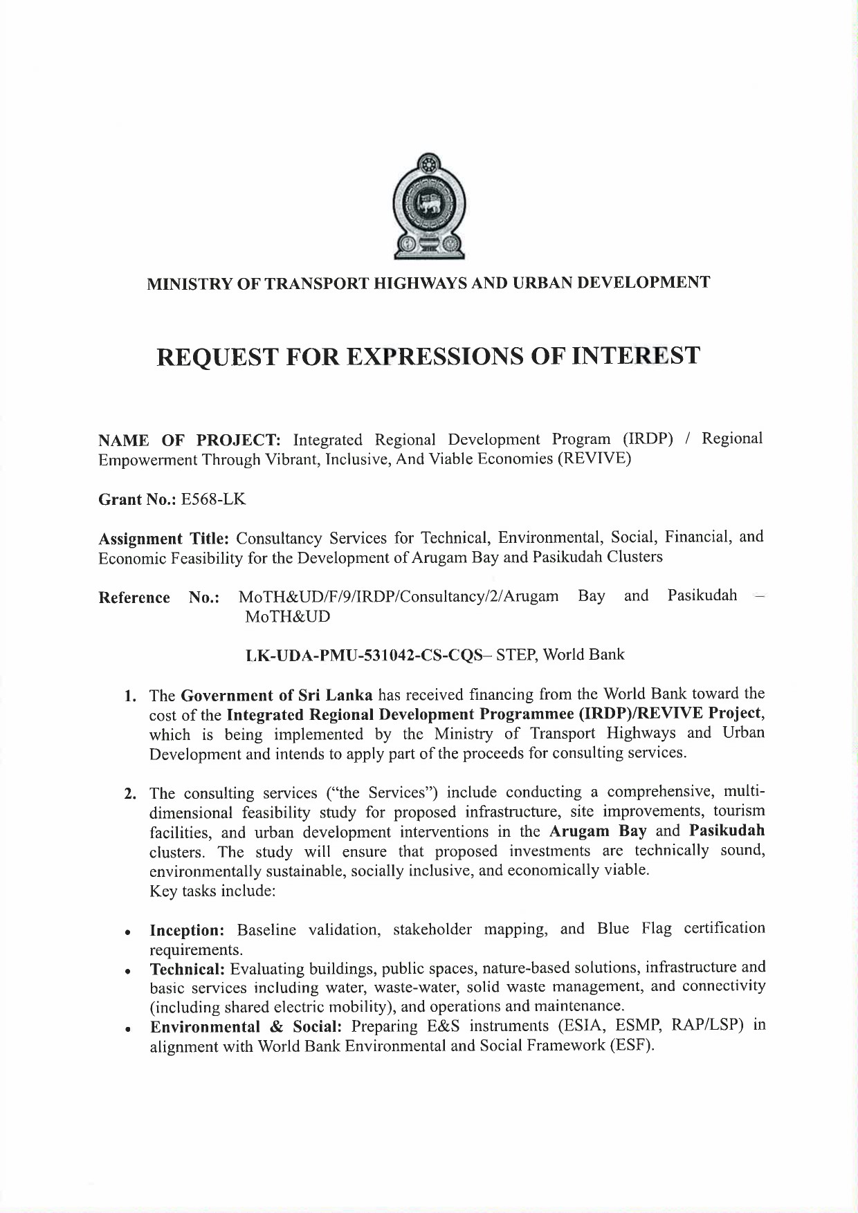 Request for Expression of Interest (REOI) – Select Consulting Firms for Regional Empowerment through Vibrant, Inclusive and Viable Economic (REVIVE) IRDP