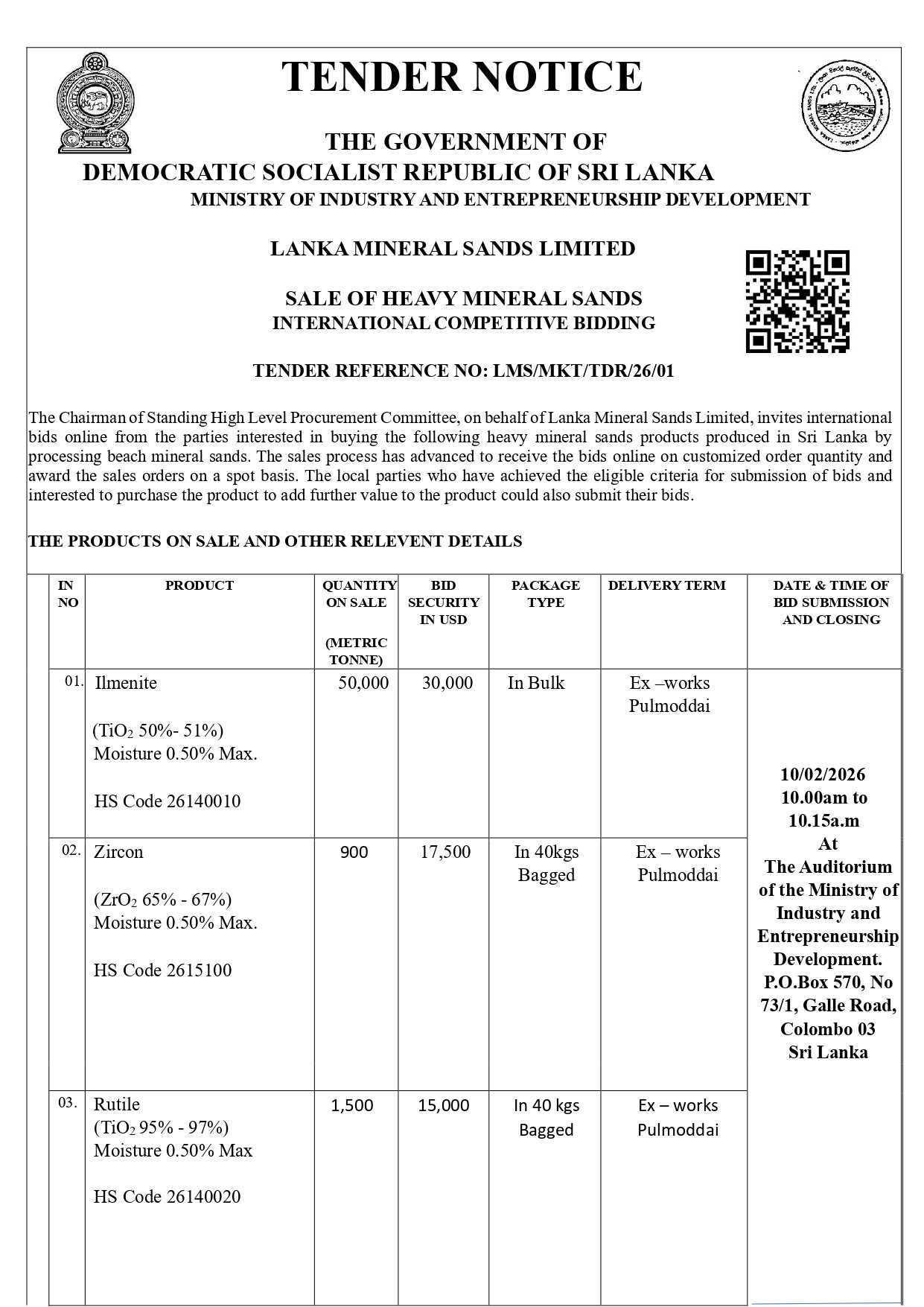 Tender Reference No: Lms/Mkt/Tdr/26/01