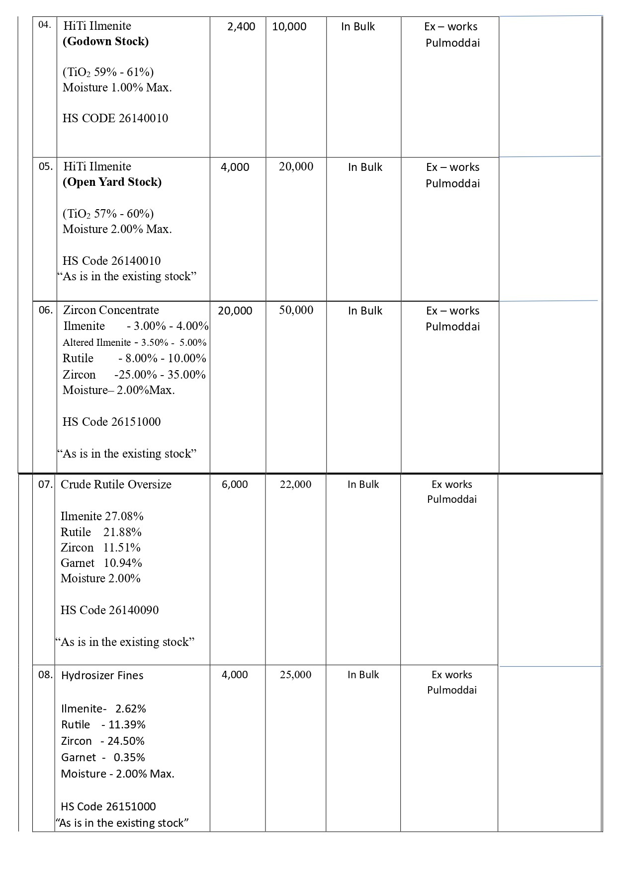 Sale Of Heavy Mineral Sands