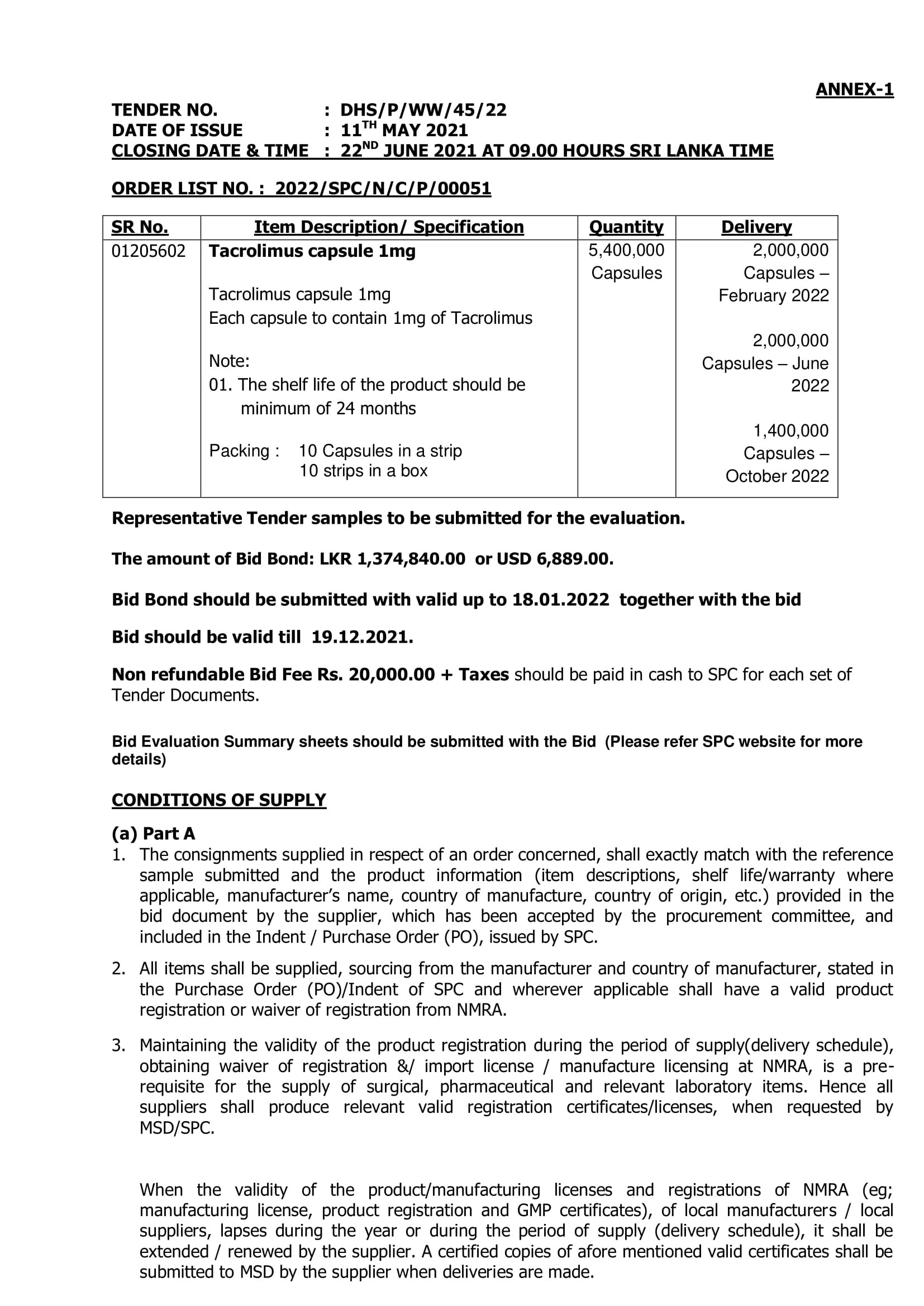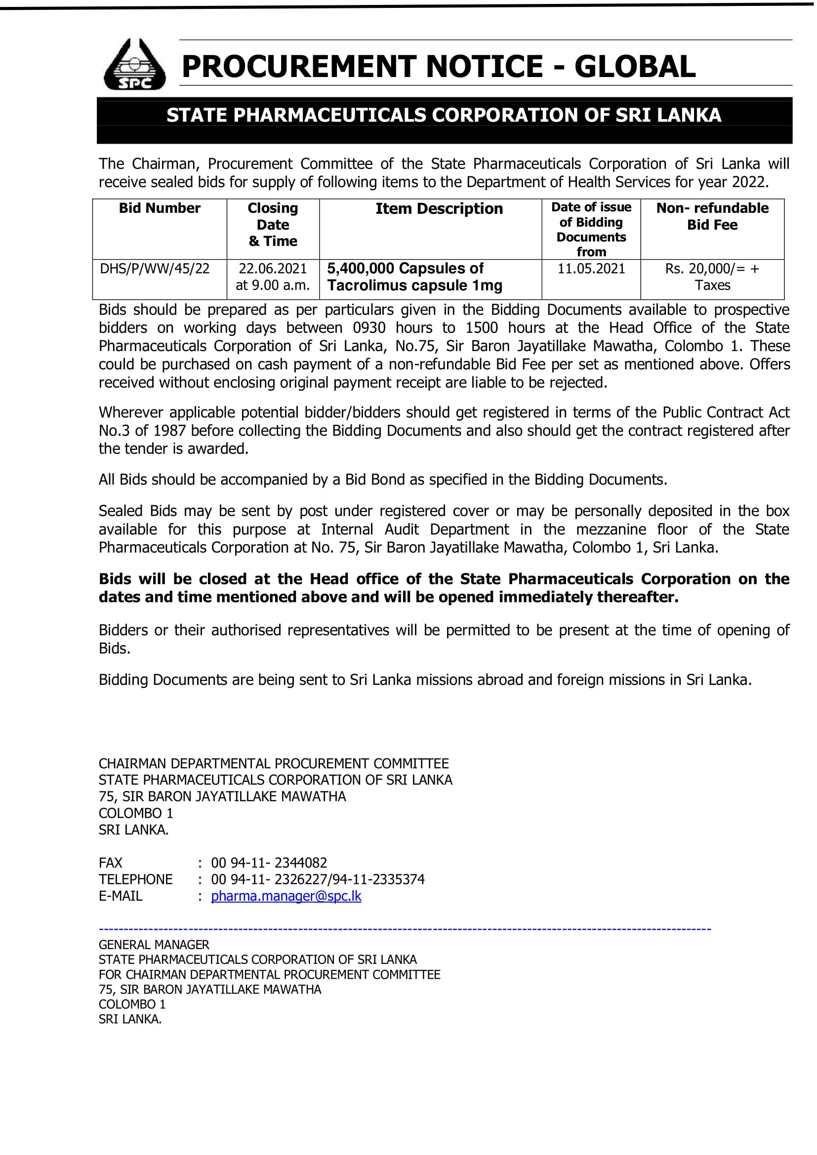 Procurement Notices - State Pharmaceuticals Corporation of Sri Lanka