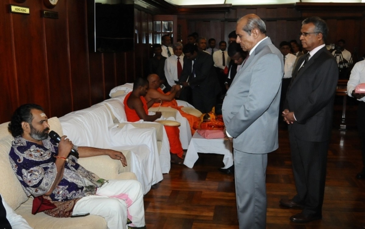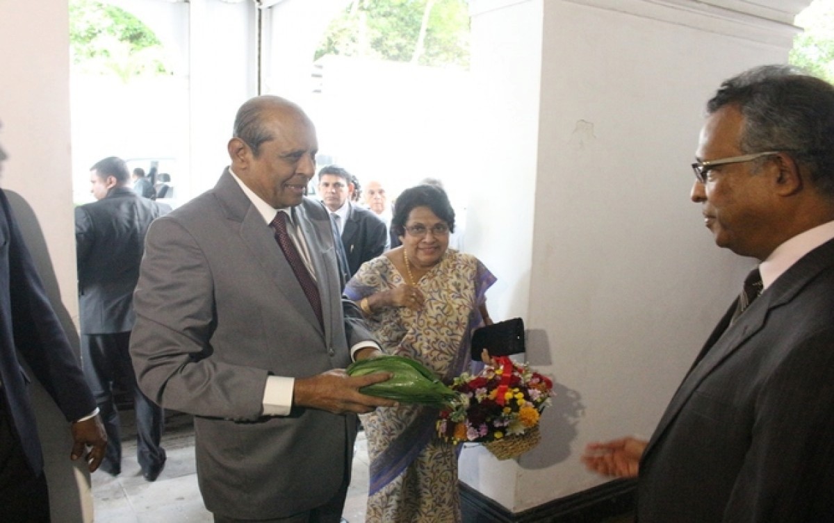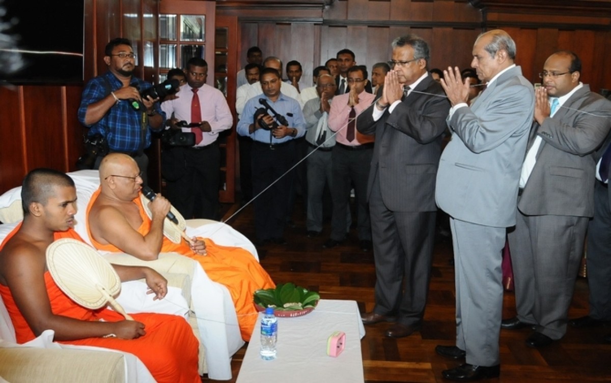 Minister Marapana was received by the Secretary of the Ministry of Foreign Affairs Prasad Kariyawasam and senior staff upon arrival at the Ministry. Following the lighting of the traditional oil lamp and holding of religious observances, the Minister officially assumed duties at the Ministry.