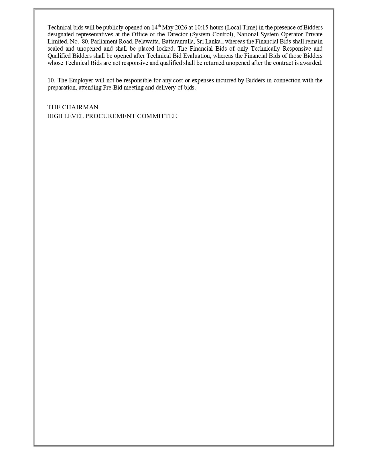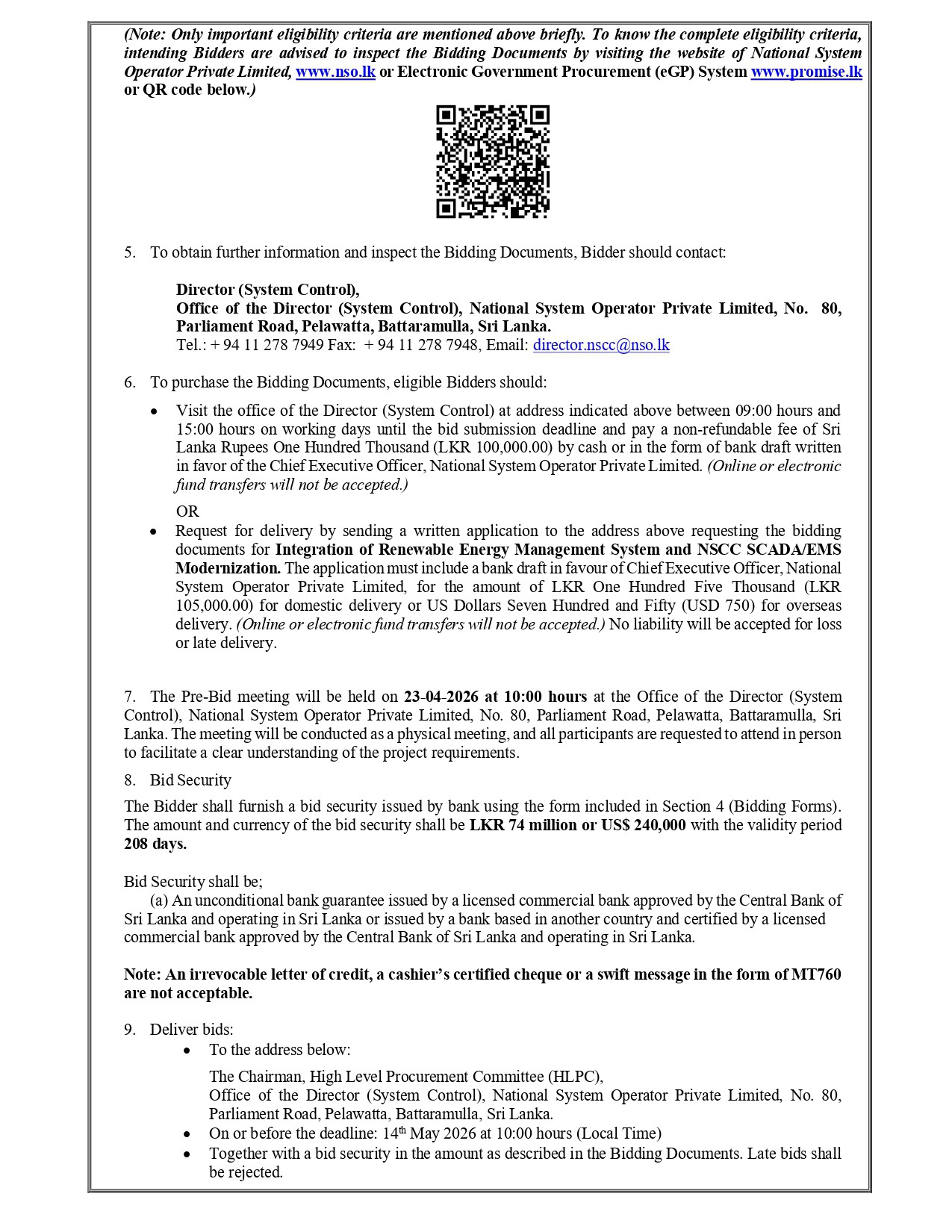Invitation for Bids (IFB) – Ministry of Energy Power System Strengthening and Renewable Energy Integration Project: Package 6 – Integration of Renewable Energy Management System and NSCC SCADA/EMS Modernization IFB No: CEB/AGM (P)/TDE/IFB/2025/02/HLPC