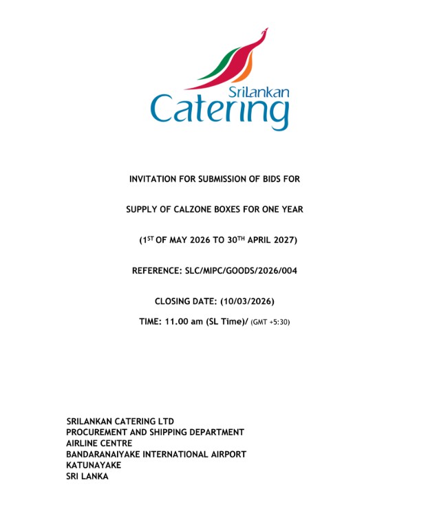 6.02.2026 - 11:20 Invitation for Bids (IFB) - SriLankan Catering Ltd Reference No.: SLC/MIPC/GOODS/2026/004 & SLC/MIPC/GOODS/2025/047