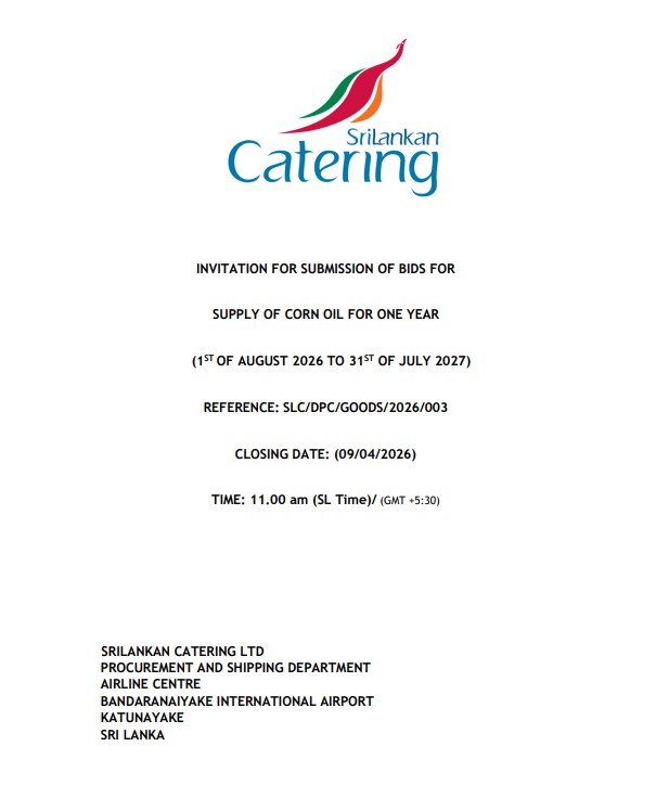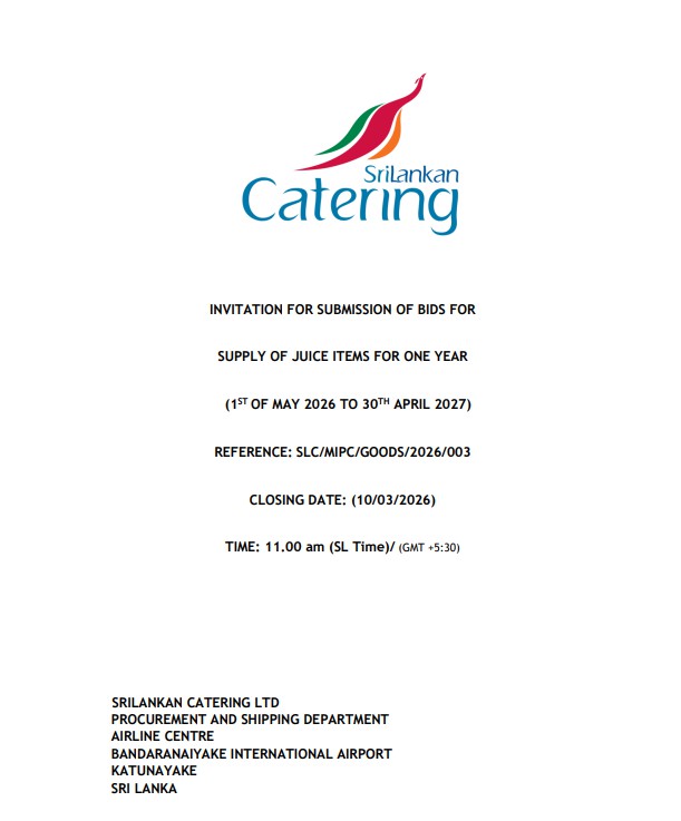 27.02.2026 - 14:59 Invitation for Bids (IFB) - SriLankan Catering Ltd Reference No.: SLC/MIPC/GOODS/2026/003 & SLC/DPC/GOODS/2026/003