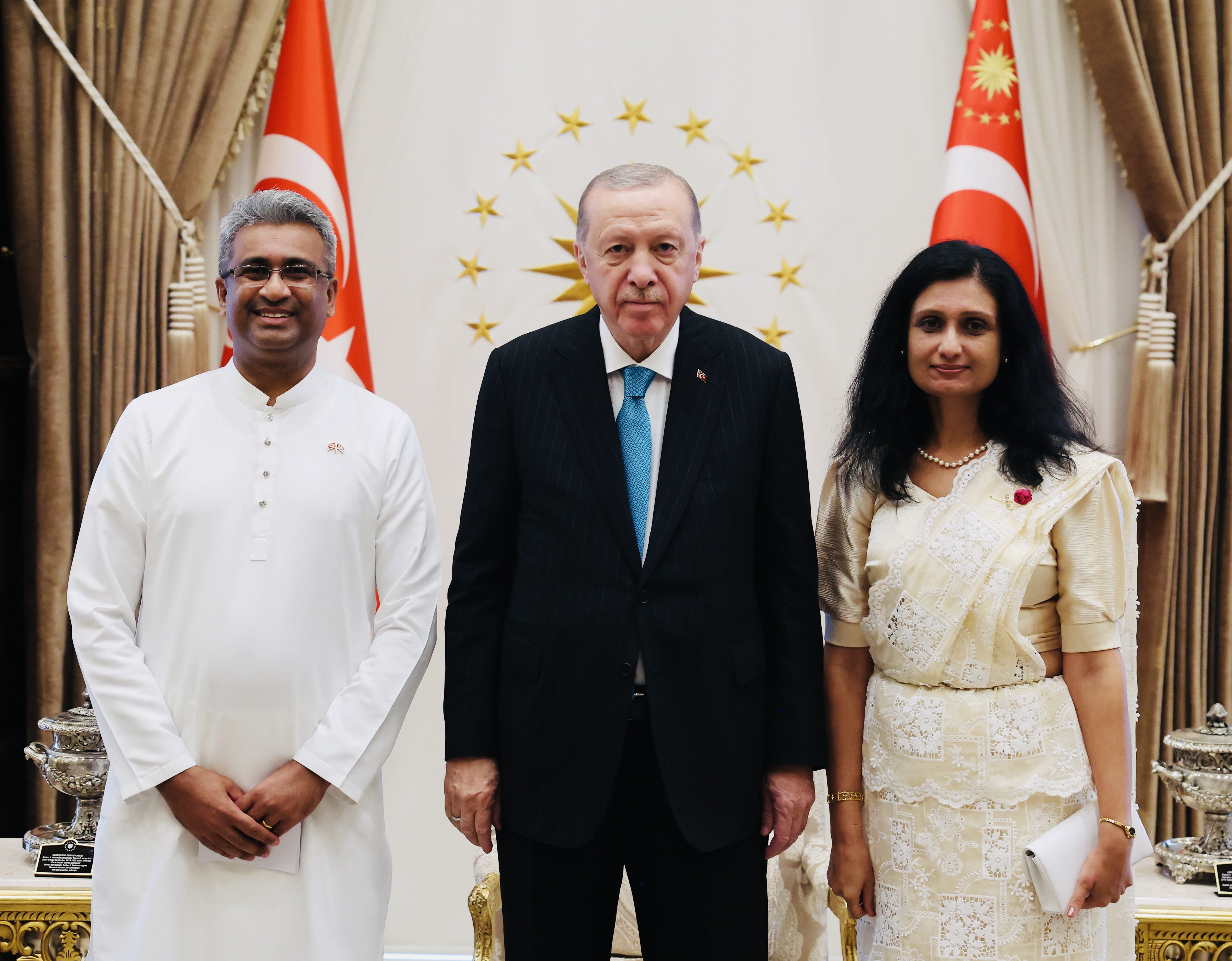 During the meeting that followed the Credentials ceremony, President Erdoğan expressed keen interest in exploring ways and means to enhance trade, economic and investment cooperation between the two countries. He also referred to Türkiye’s educational and scholarship programmes that are beneficial to Sri Lanka and highlighted the growing prospects for defence industry collaboration as well.