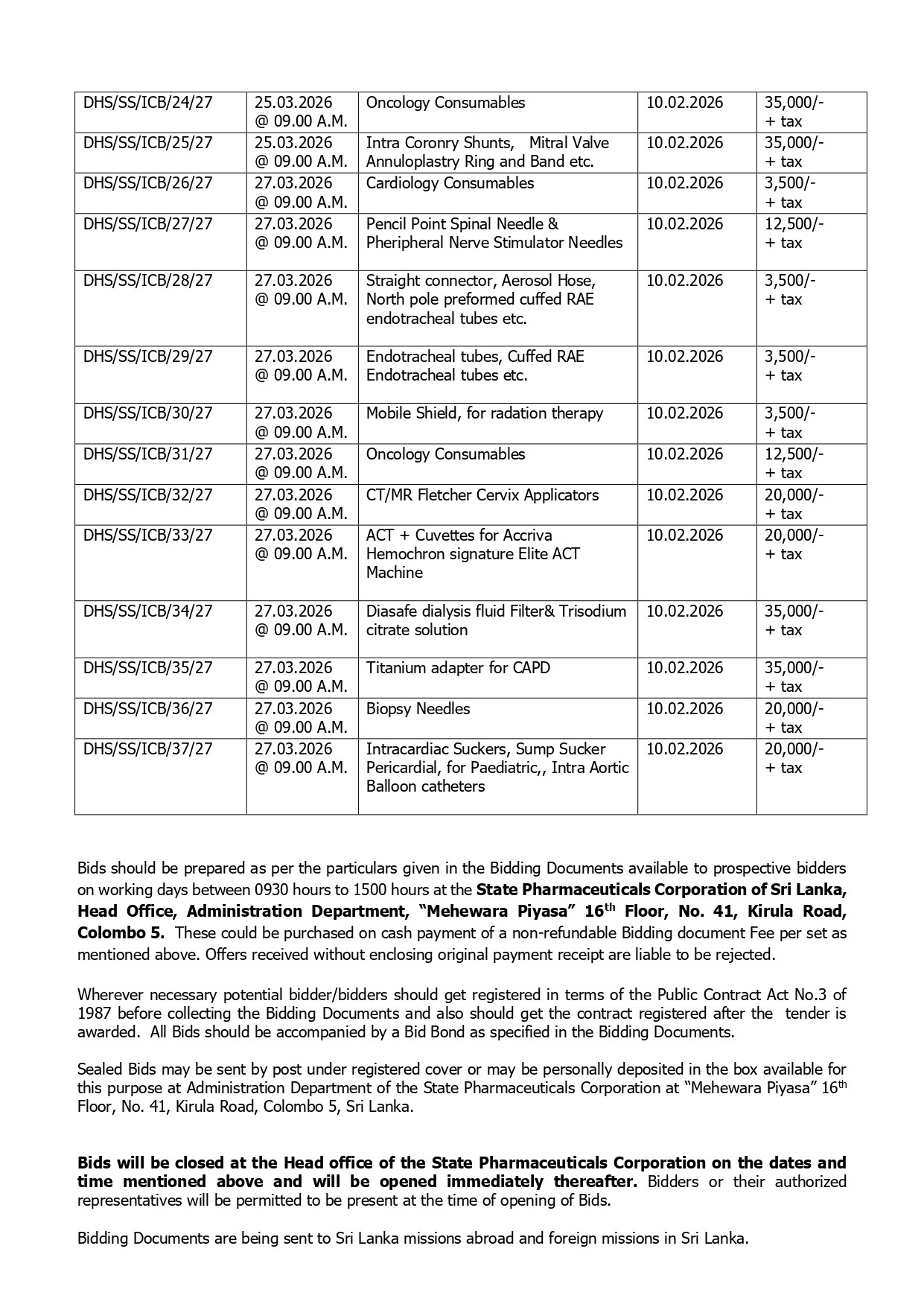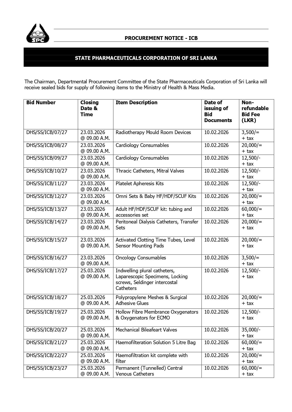 Procurement Notice - State Pharmaceuticals Corporation of Sri Lanka