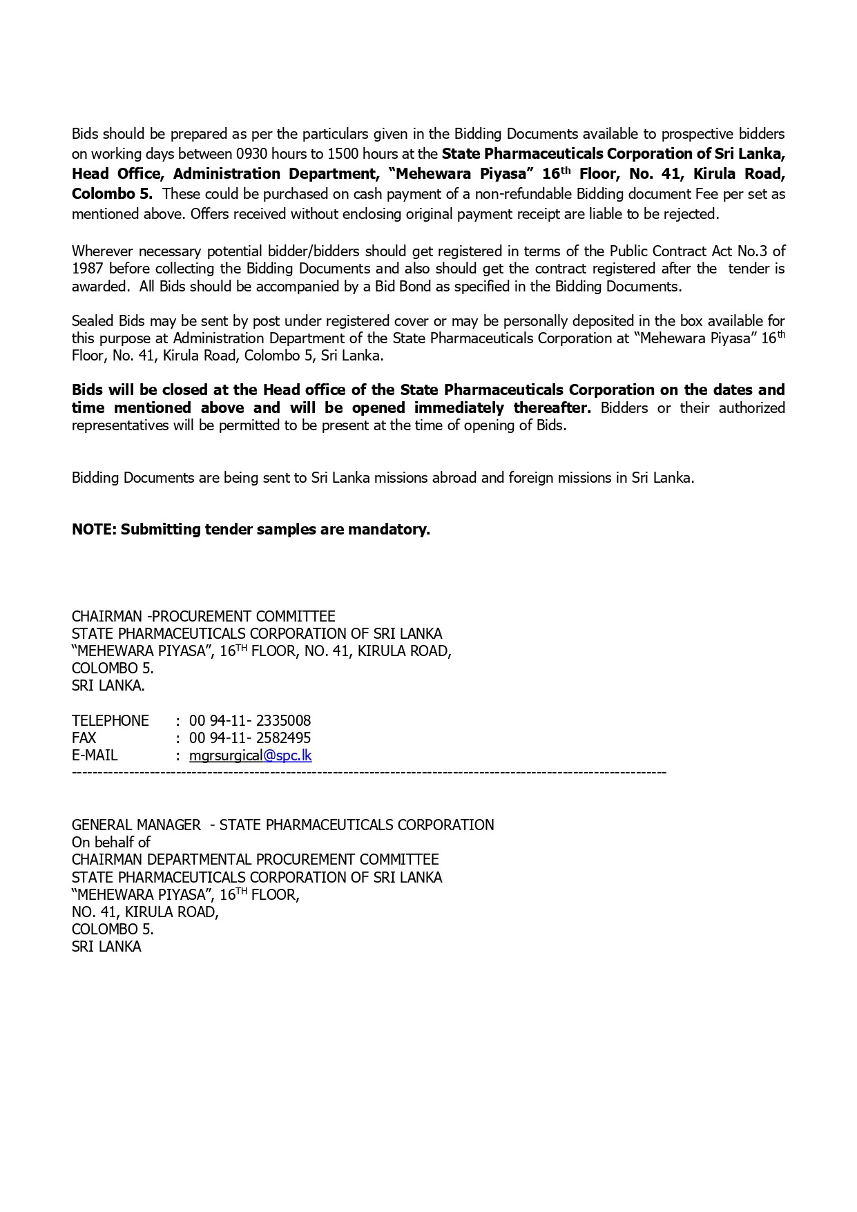 Procurement Notice - State Pharmaceuticals Corporation of Sri Lanka