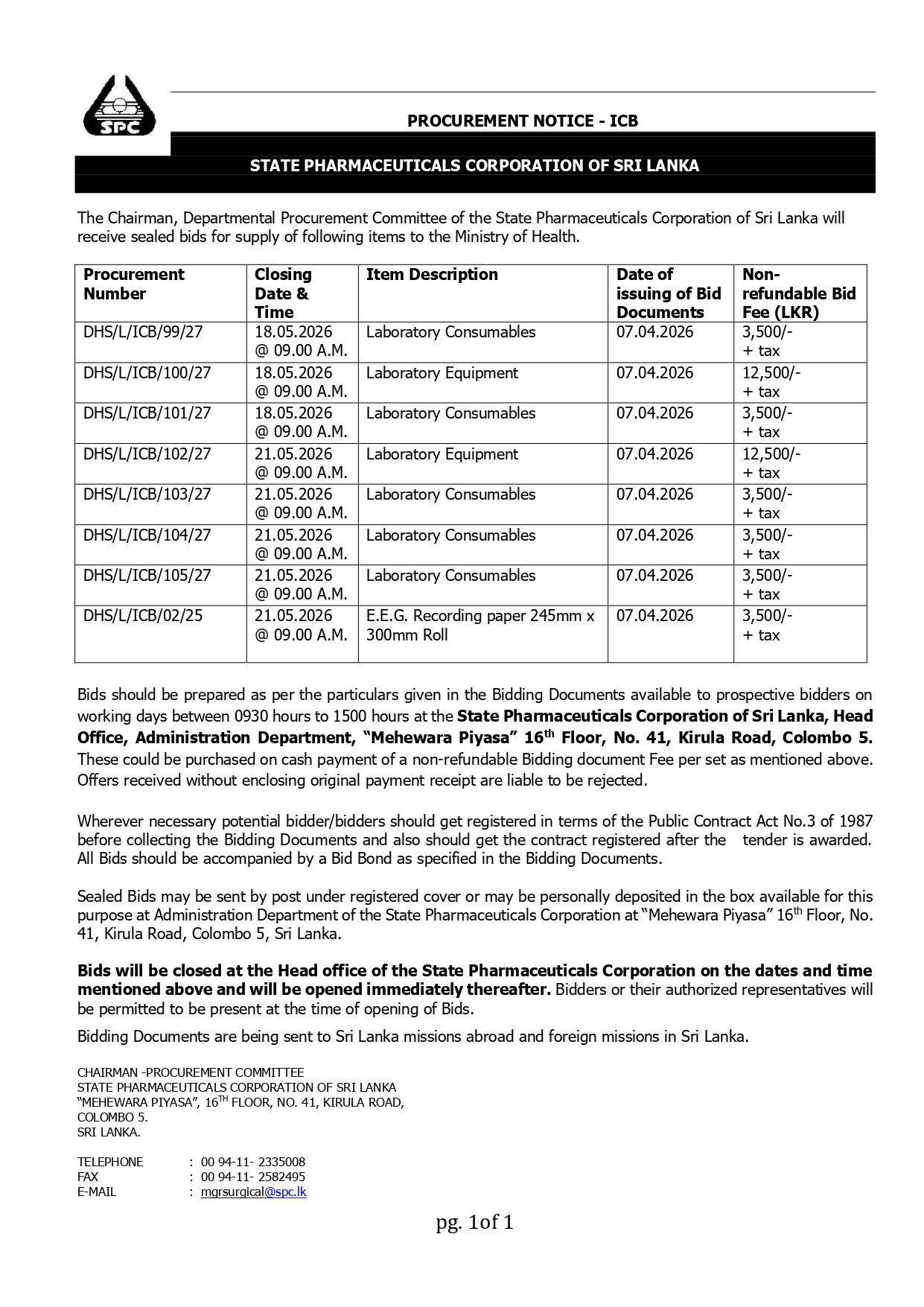 Procurement Notices - State Pharmaceuticals Corporation of Sri Lanka