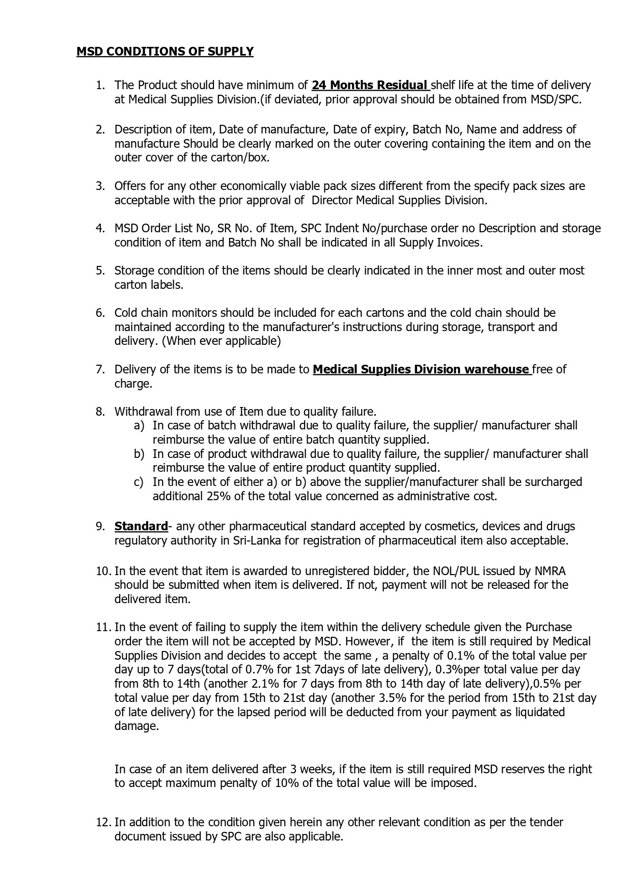 Procurement Notices - State Pharmaceuticals Corporation of Sri Lanka -164 Pre-filled Syringe/prefilled Pen of Golimumab Solution for Injection 50mg, in pre-filled syringes/prefilled pen.