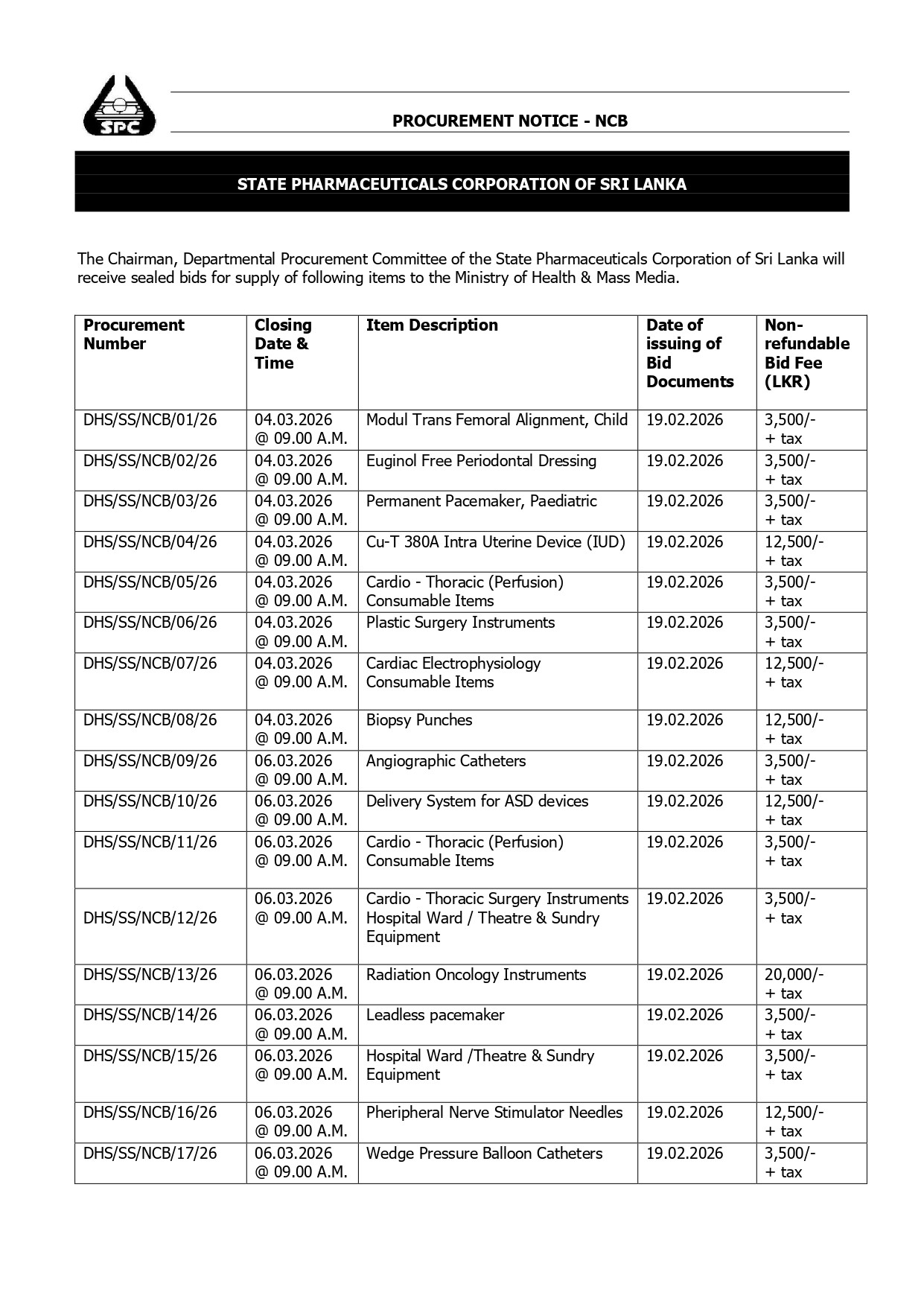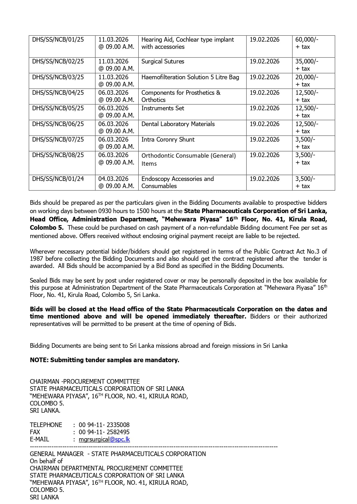 Procurement Notices - State Pharmaceuticals Corporation of Sri Lanka