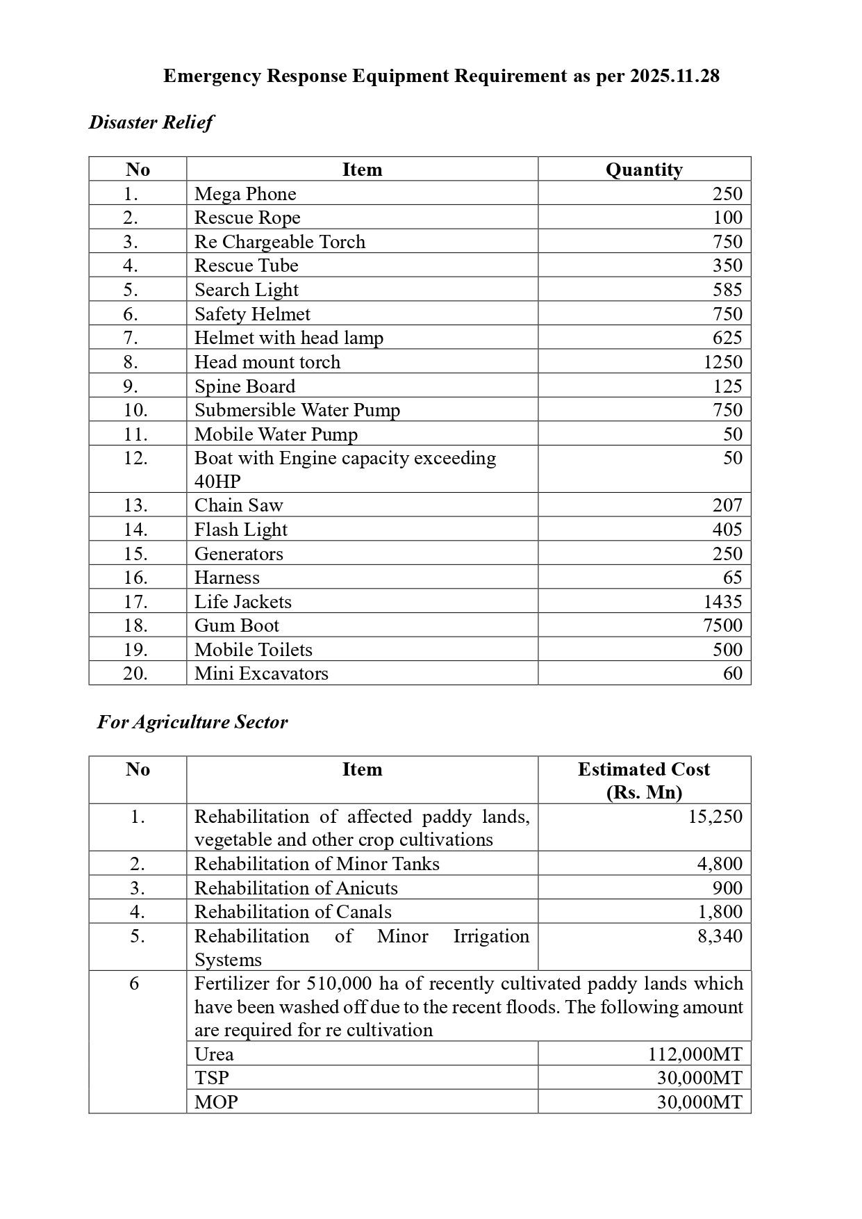 If you wish to provide material assistance, please refer to the list of essential items currently required which is attached herewith as Annex I. However, please note that, due to the prevailing conditions, regrettably the Government of Sri Lanka is not in a position to bear the cost of air/sea transportation of the required items, but would facilitate expeditious customs clearance.