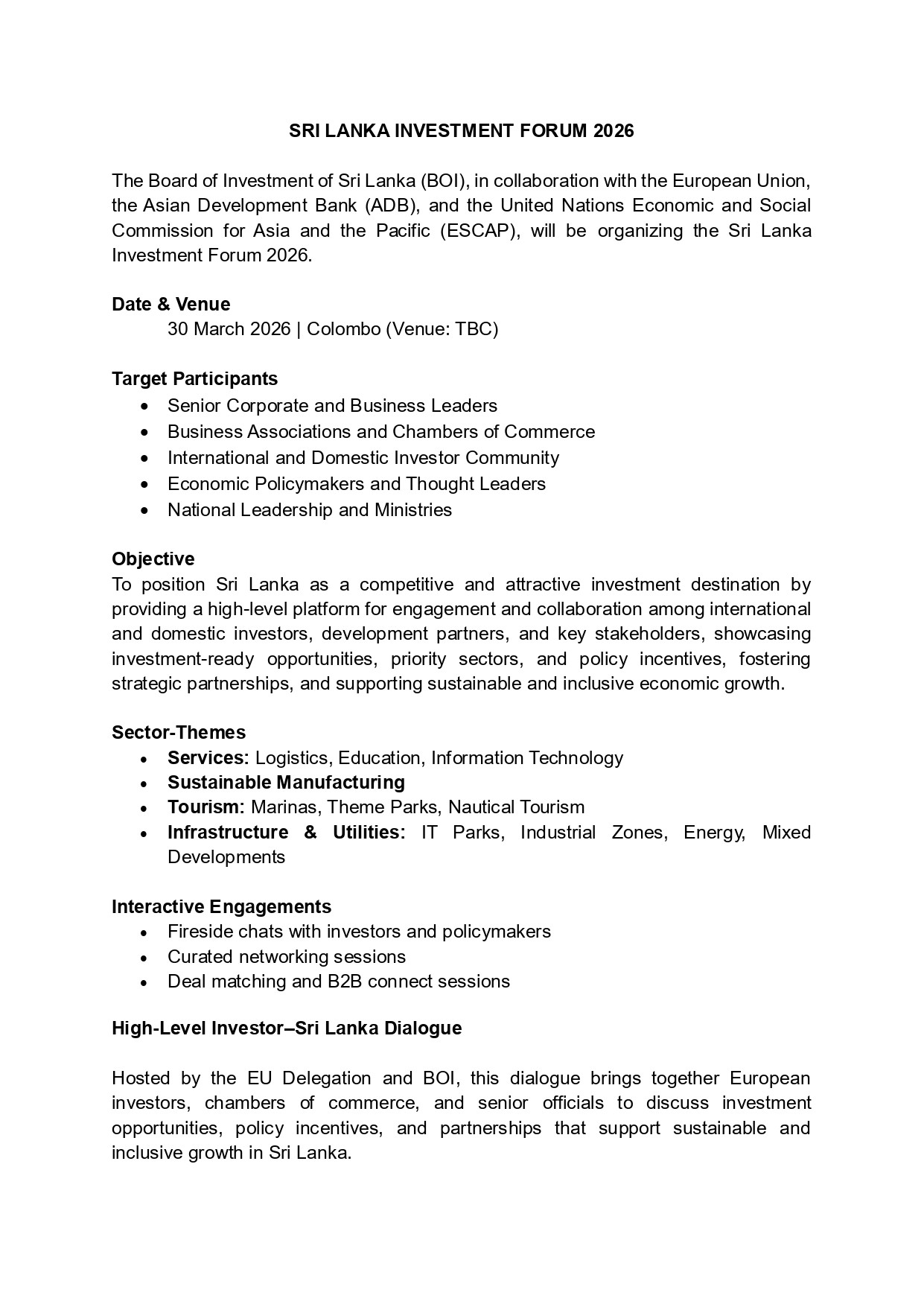 Sri Lanka Investment Forum 2026