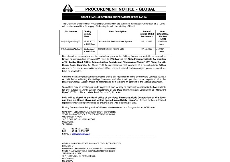 Procurement Notices - State Pharmaceuticals Corp of Sri Lanka