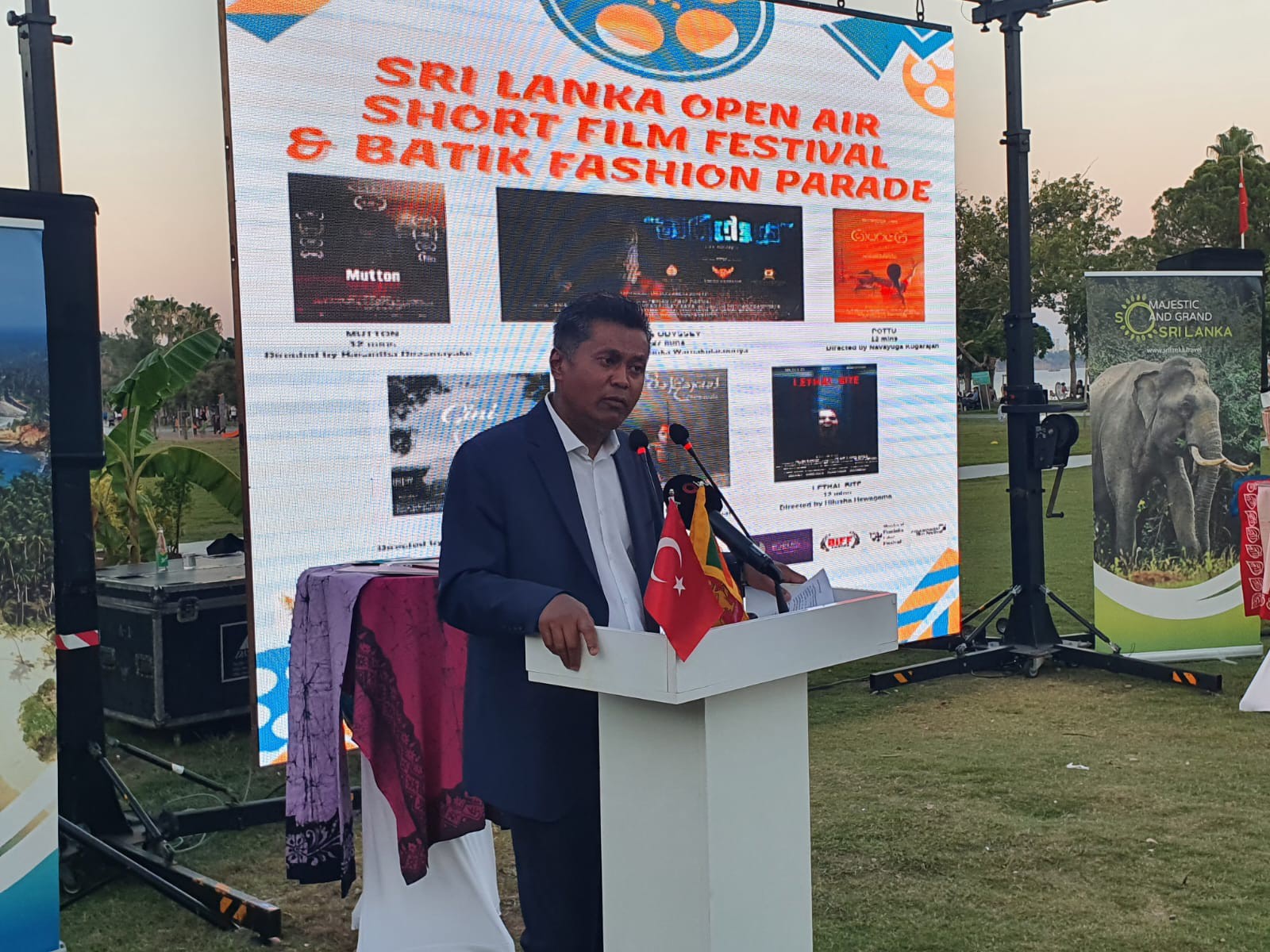 Ambassador Rizvi Hassen speaking during the event briefed about batik, handloom and vibrant fashion industry of Sri Lanka. Mr. Ali Kamburoglu, Honorary Consul of Sri Lanka to Antalya also spoke during the event and invited Turkiye to explore the beautiful batik and handloom industry of Sri Lanka and also experience the Sri Lankan short film industry.